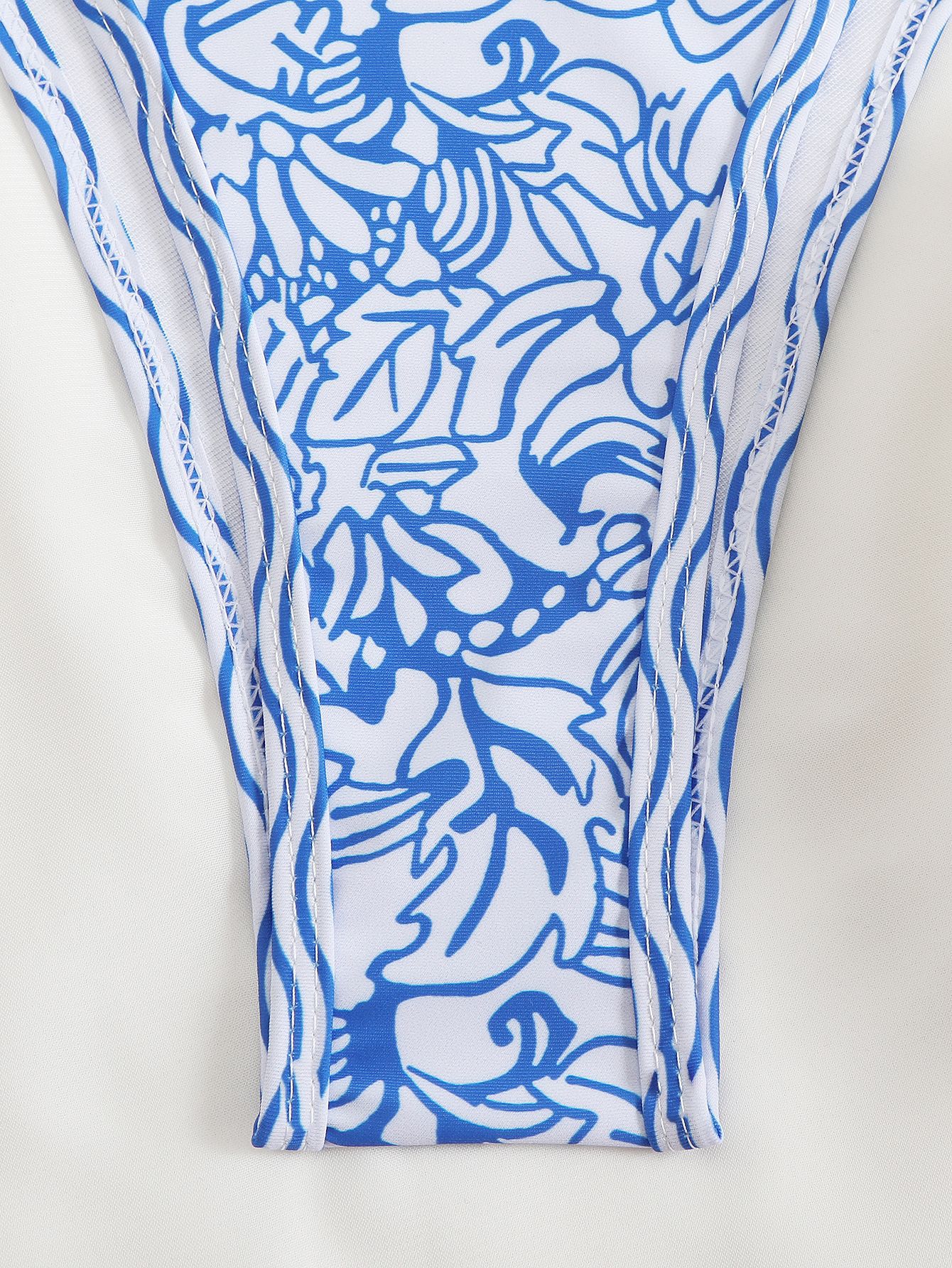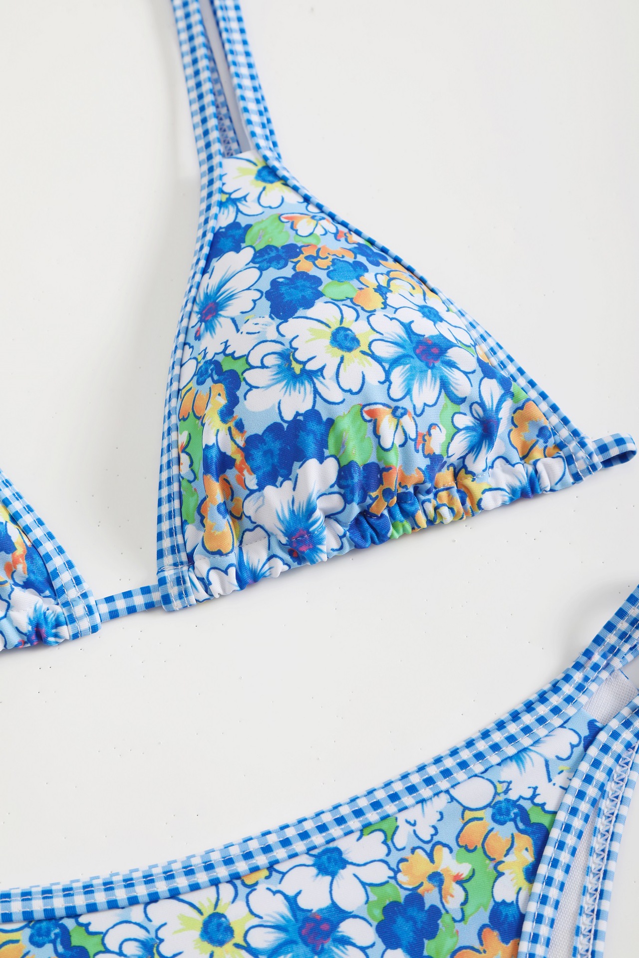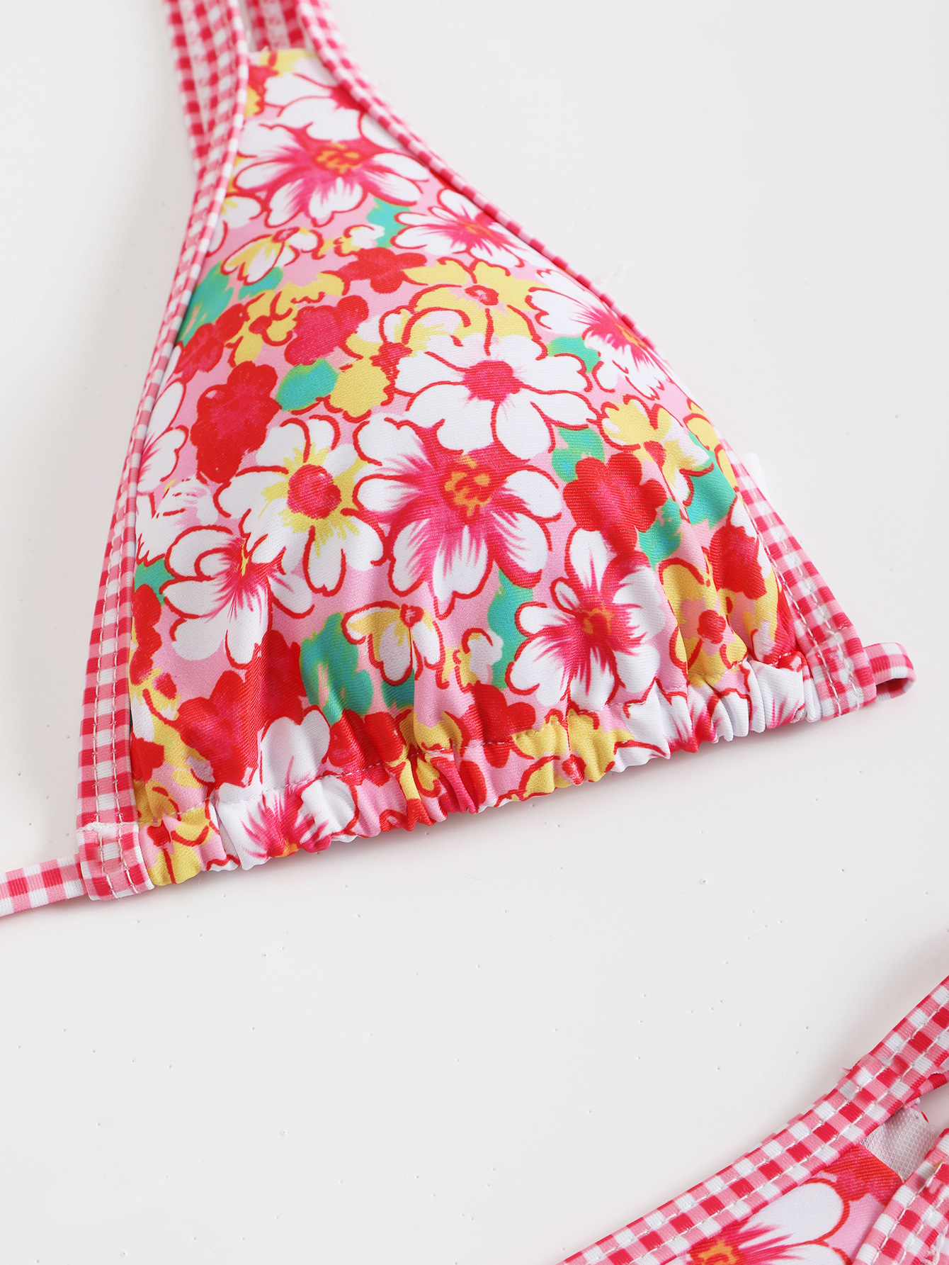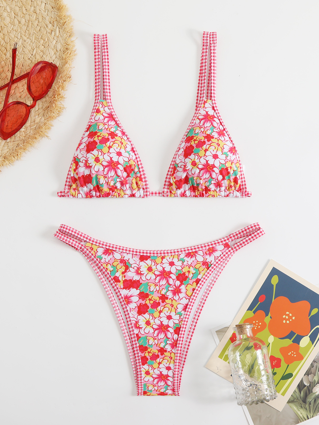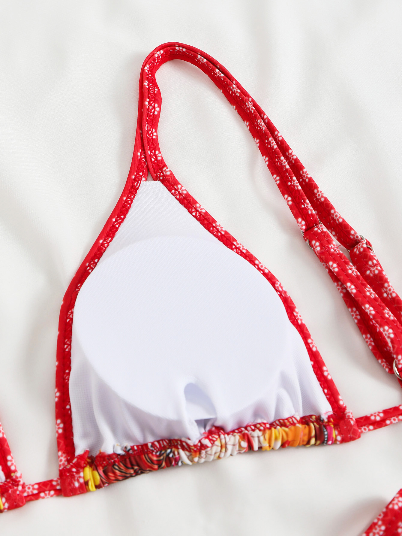 유럽과 미국의 민족 스타일 프린트 수영복, 여성스러운 삼각 컵 레이스 업 비키니, 해변 휴가, 여성용 크로스보더 수영복