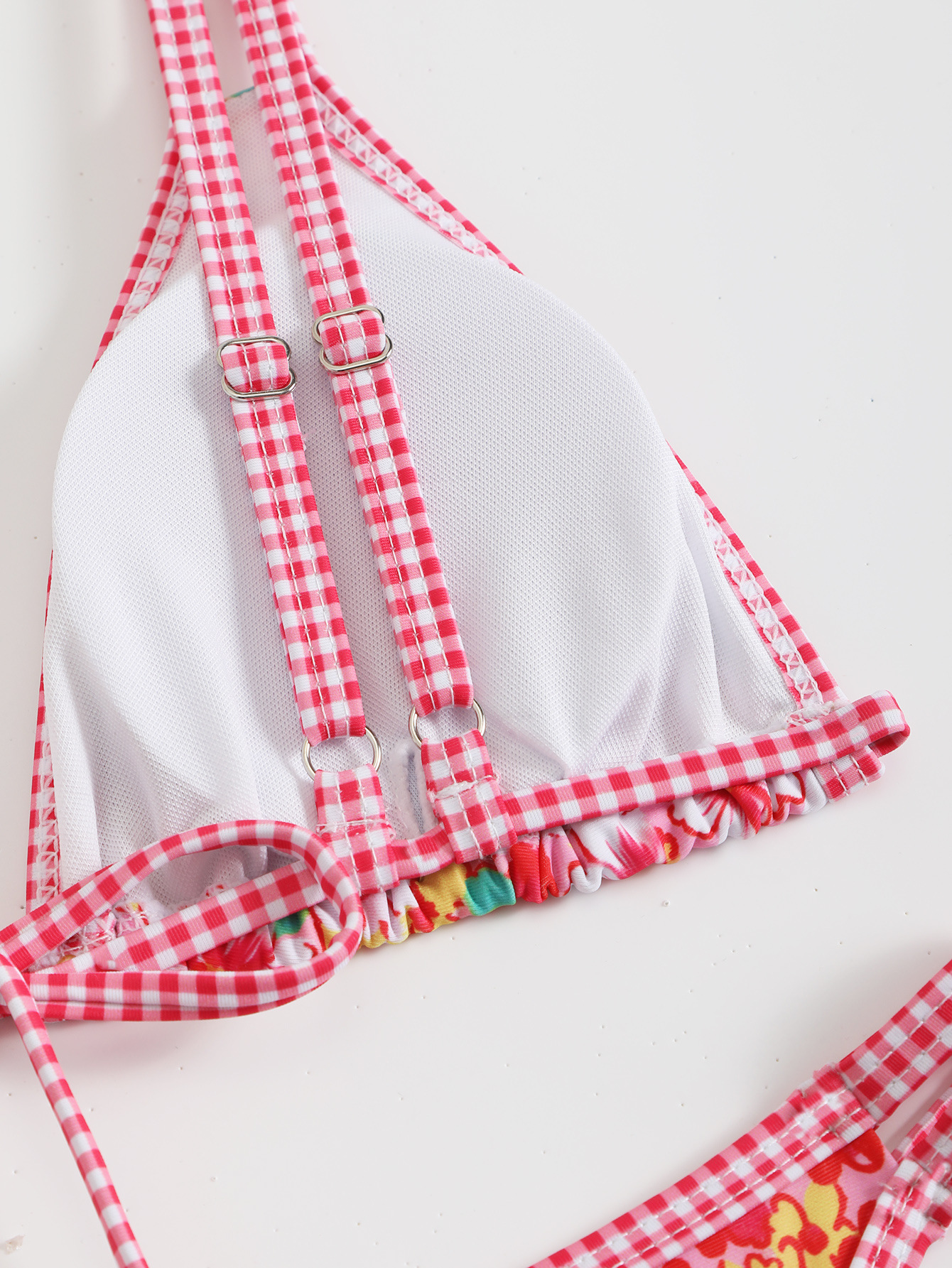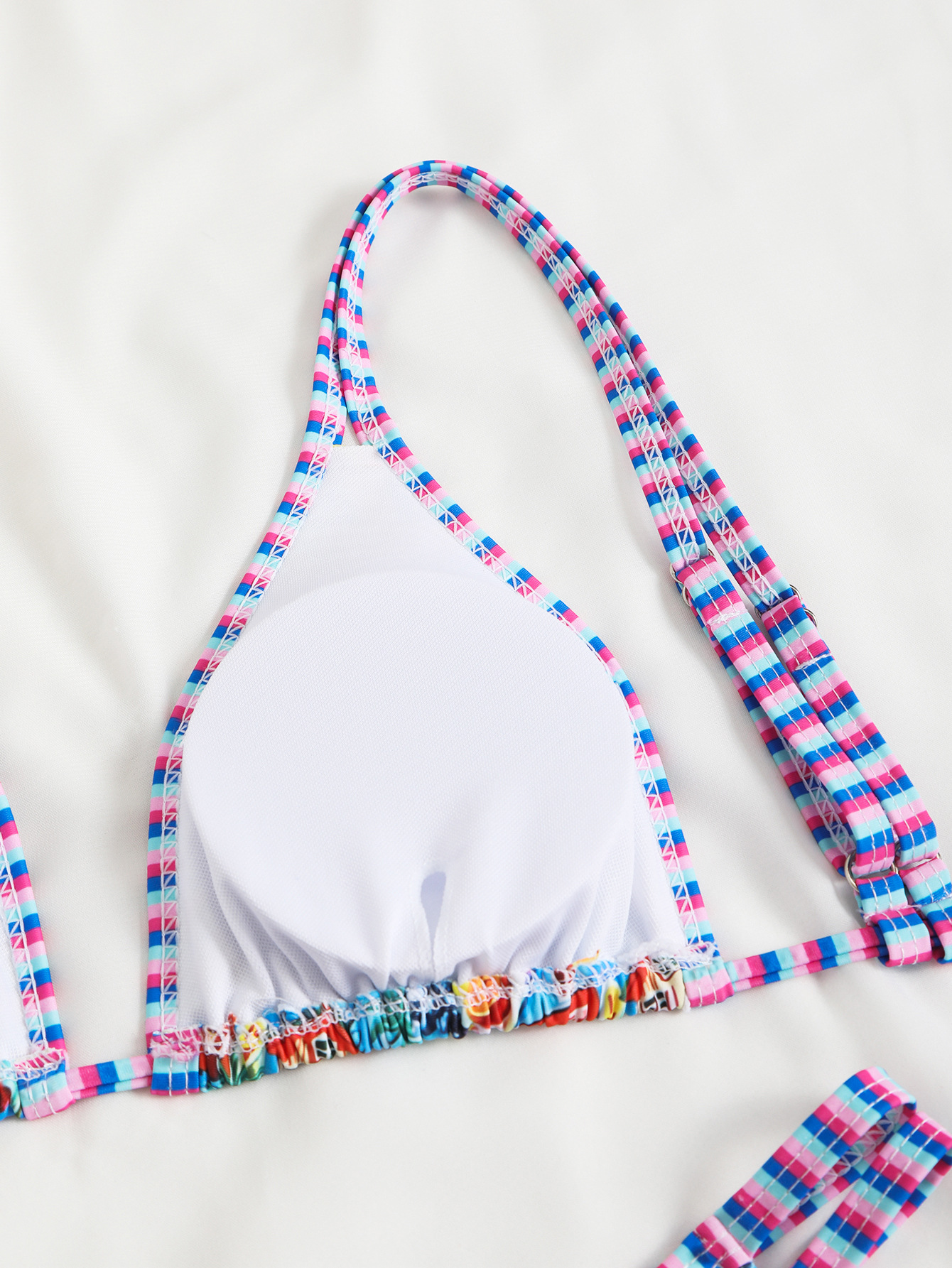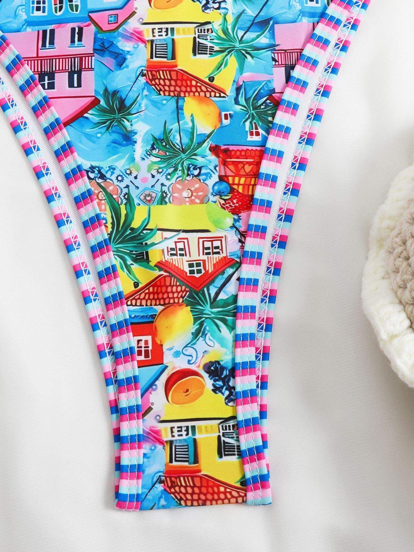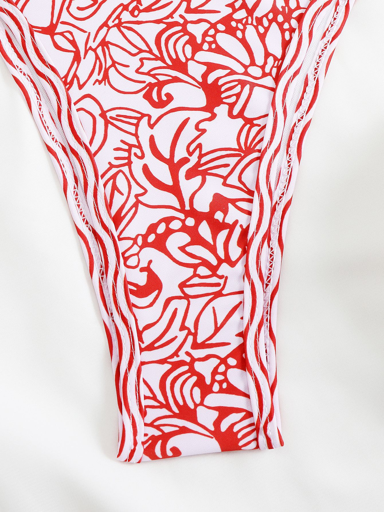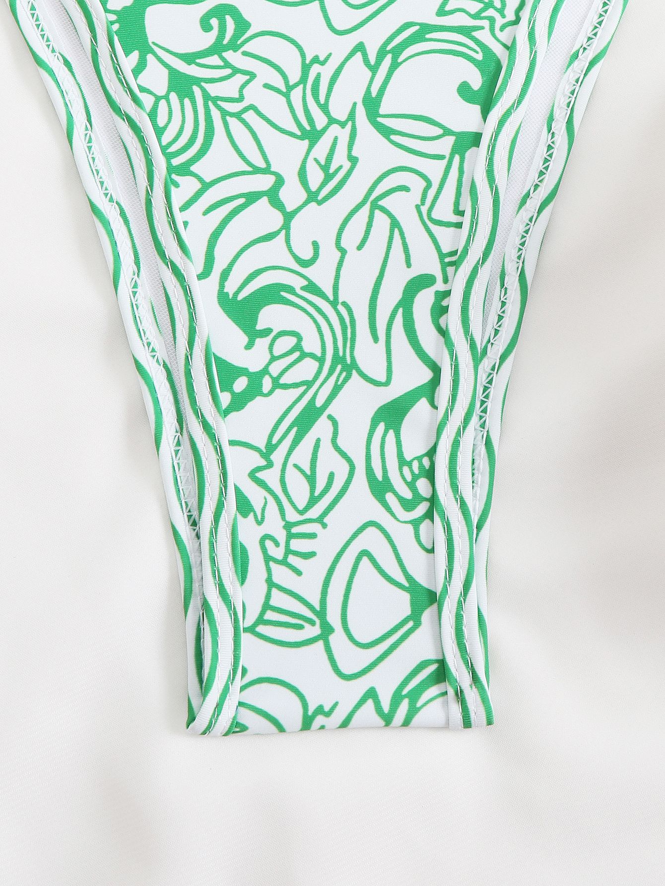 유럽과 미국의 민족 스타일 프린트 수영복, 여성스러운 삼각 컵 레이스 업 비키니, 해변 휴가, 여성용 크로스보더 수영복