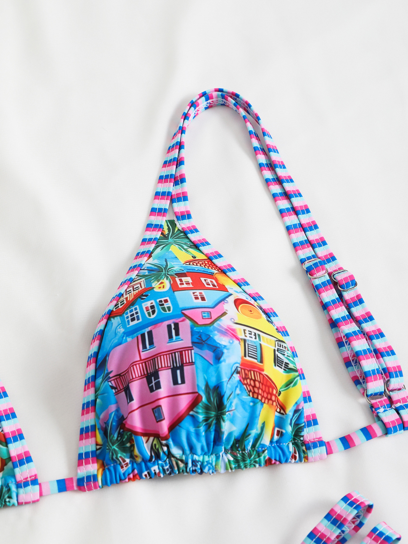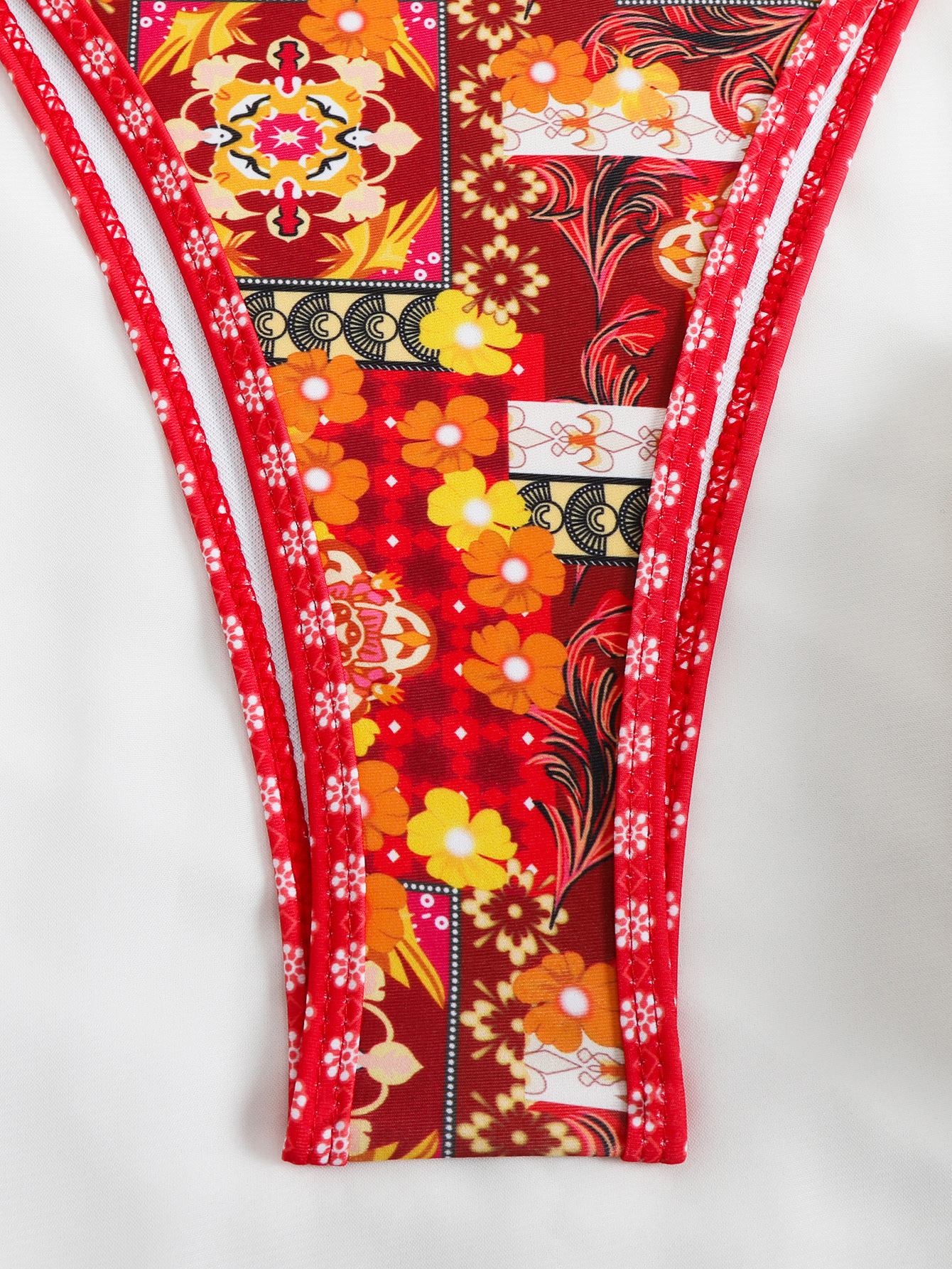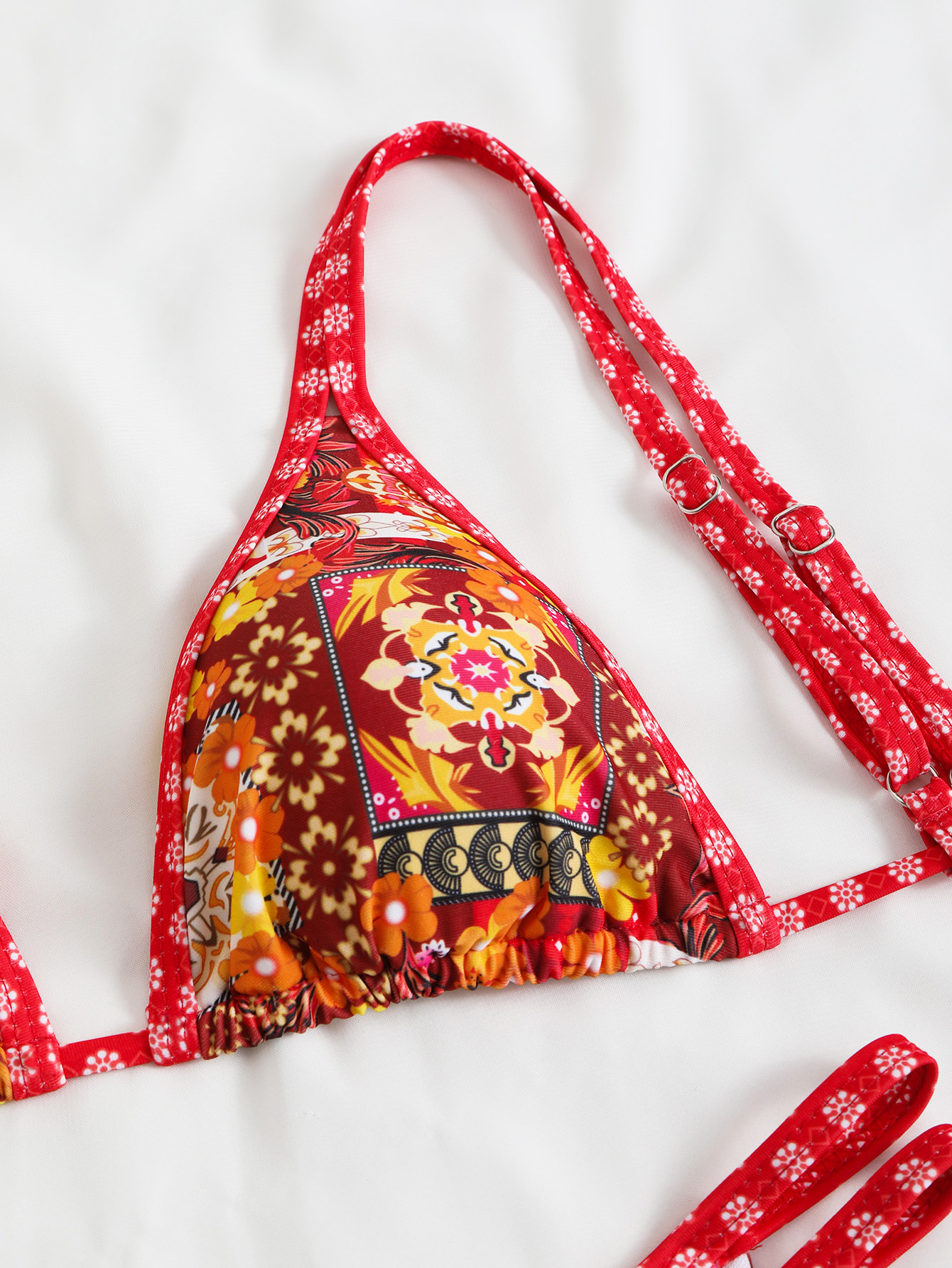 유럽과 미국의 민족 스타일 프린트 수영복, 여성스러운 삼각 컵 레이스 업 비키니, 해변 휴가, 여성용 크로스보더 수영복스토어 가기
