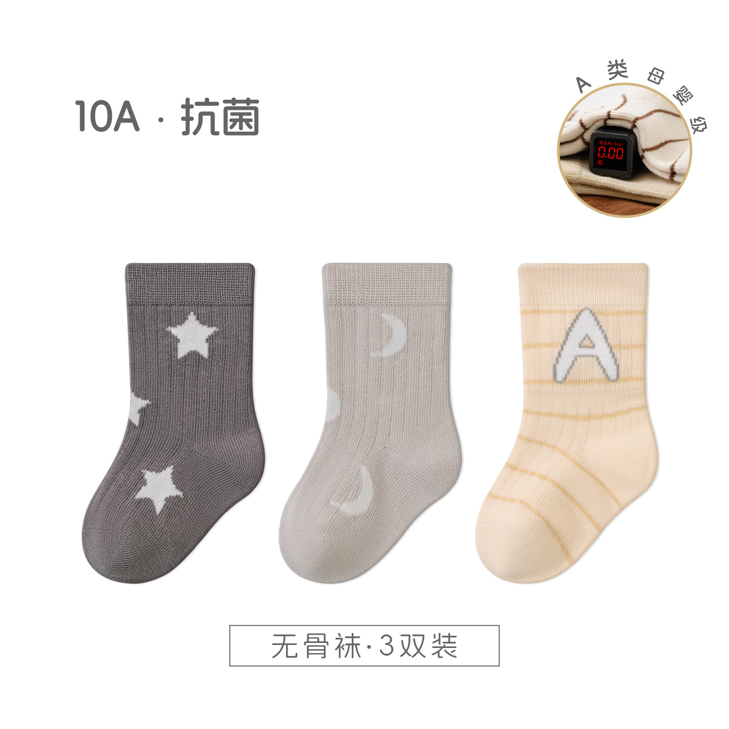아기 양말 가을 신제품 클래스 A 면 뼈없는 줄무늬 문자 아기 느슨한 통기성 어린이 중간 튜브 양말스토어 가기