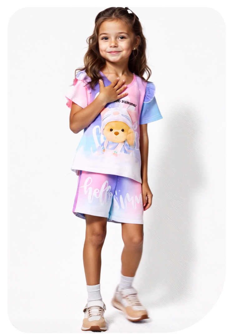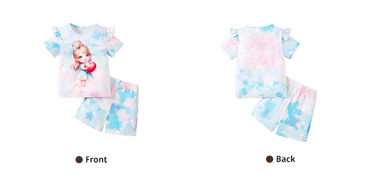 공장 도매 소녀 3D 인쇄 티셔츠 반바지 여름 홈웨어 아동용 니트 탑 반팔 슈트는 외부에서 착용 가능스토어 가기