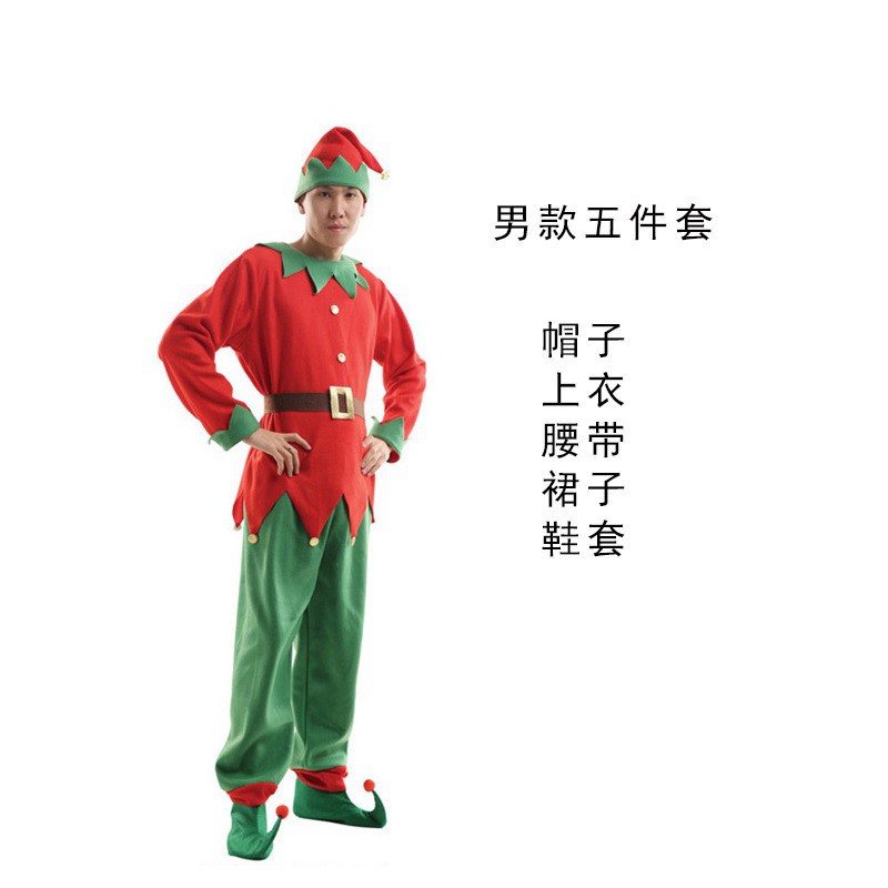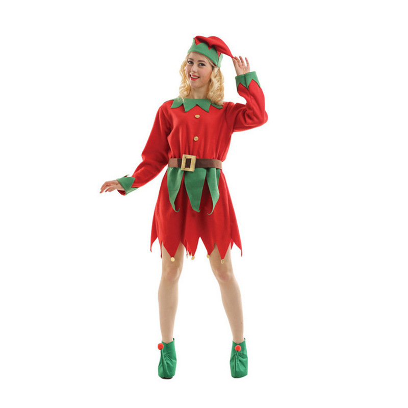유럽과 미국의 국경 간 성인 크리스마스 의상 어린이 크리스마스 엘프 정장 빨간색과 녹색 색상의 코스프레 의상