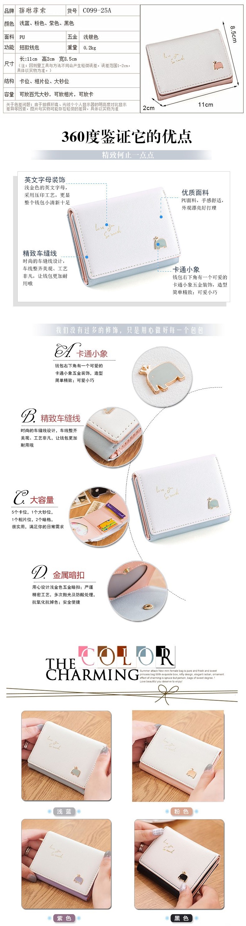 여성용 지갑 여성용 짧은 한국어 버전 귀여운 초등학생 신선한 대비 색상 70% off 만화 얇은 지갑