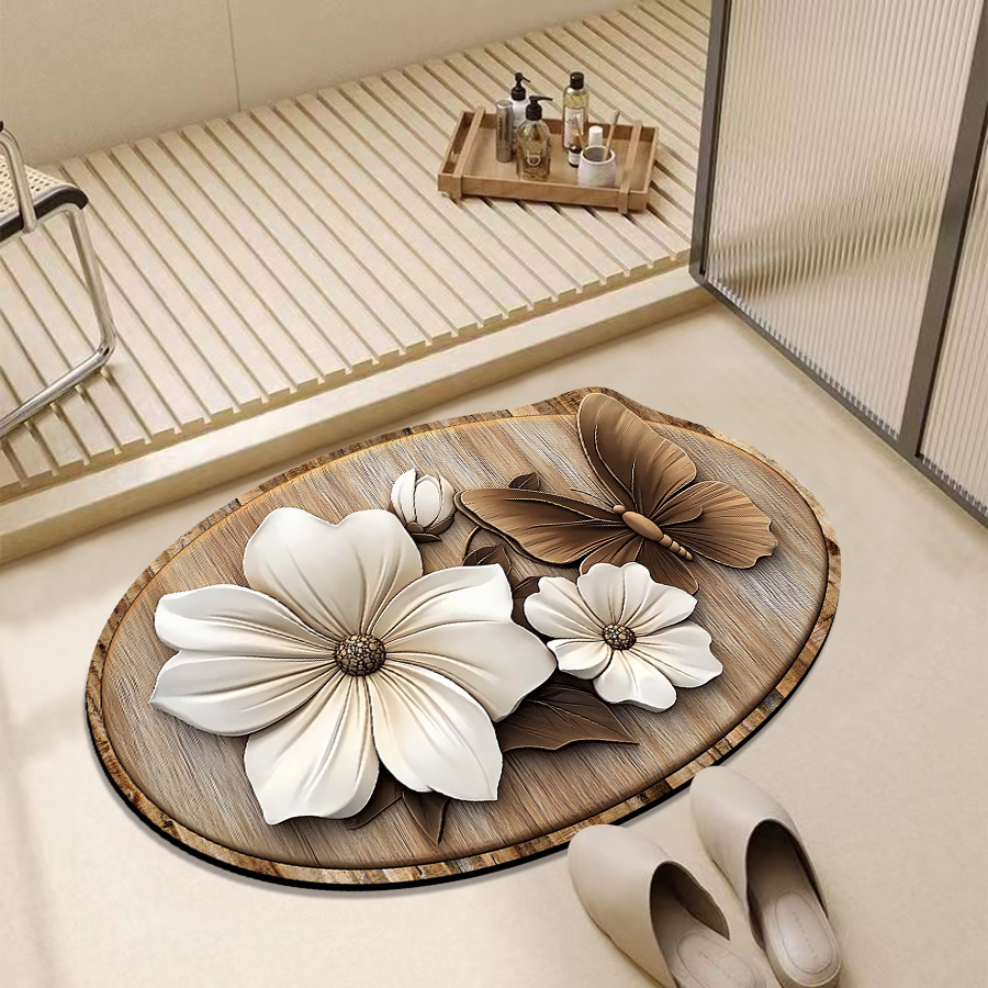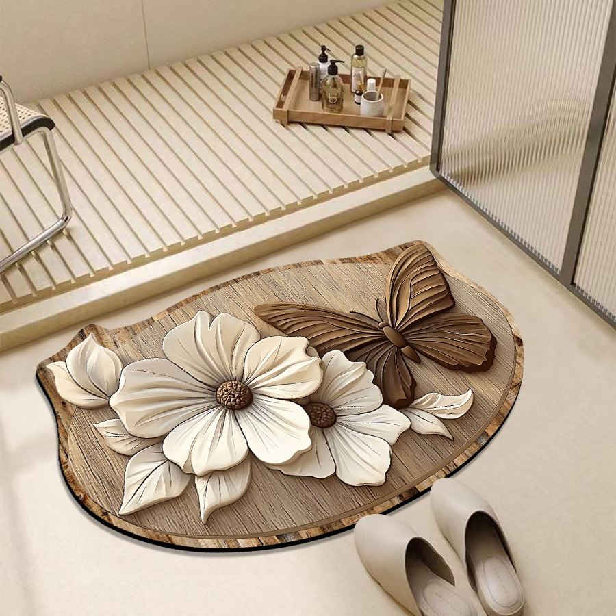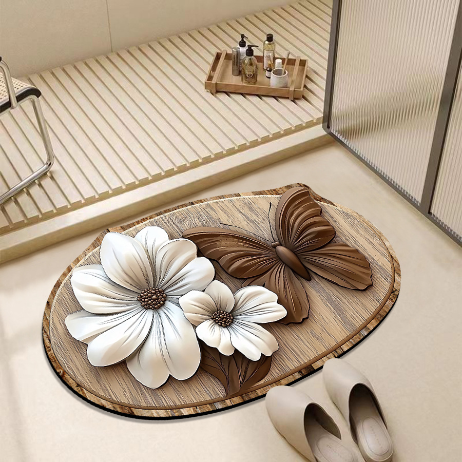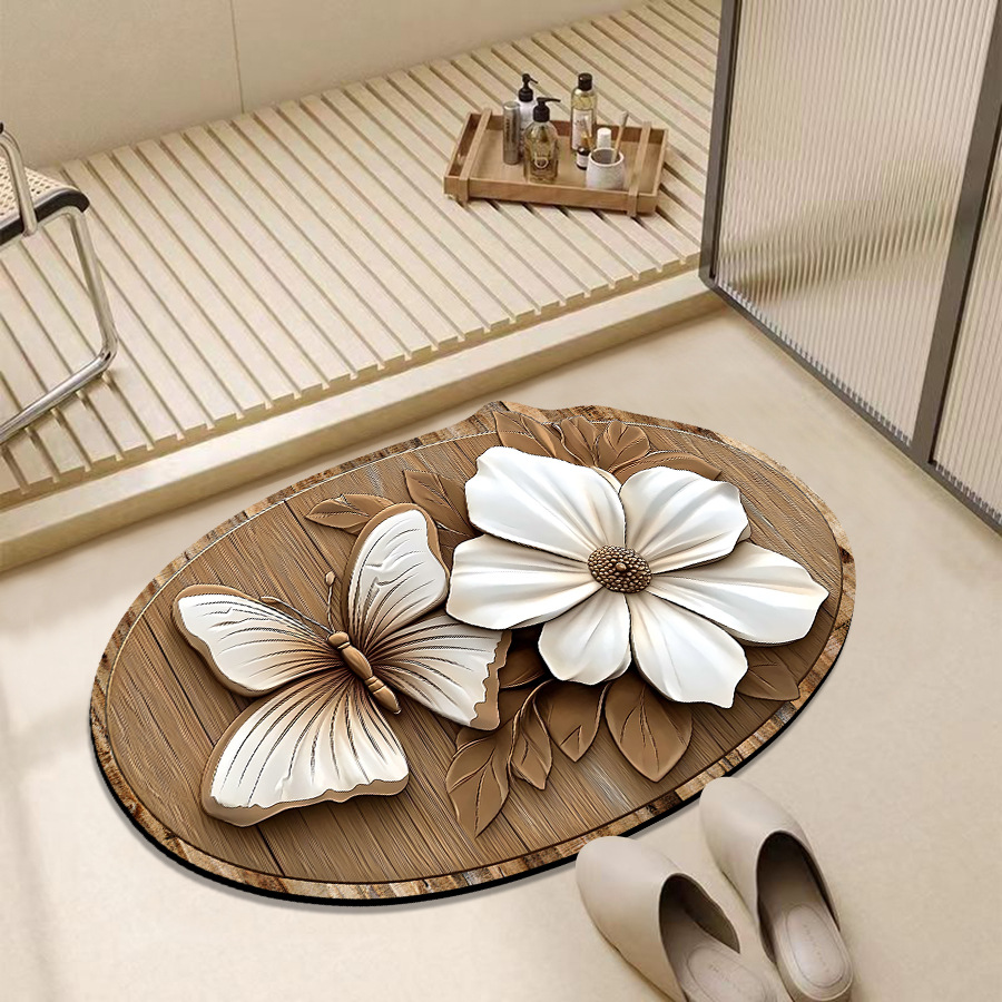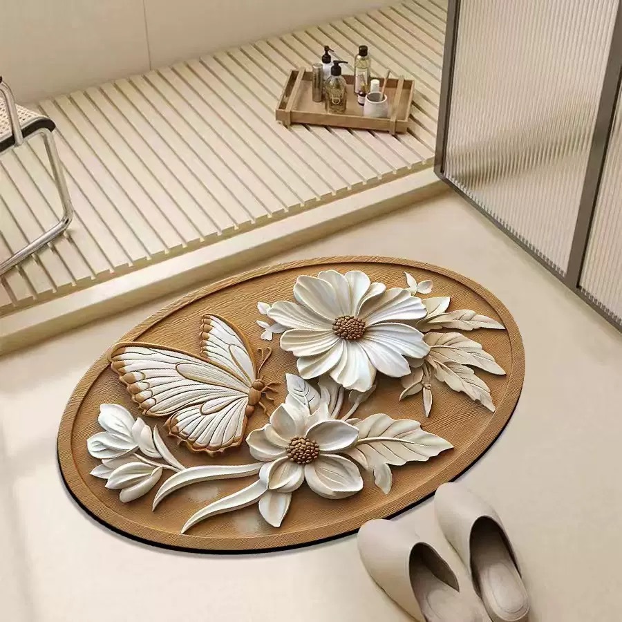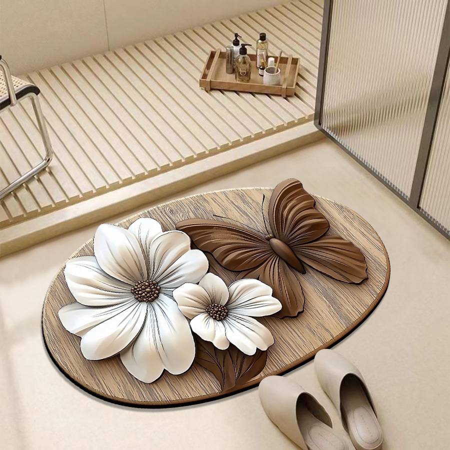 프렌치 버터플라이 욕실 문 흡수성 속건성 규조토 진흙 매트 욕실 얼룩 방지, 내마모성 및 관리가 쉬운 바닥 매트