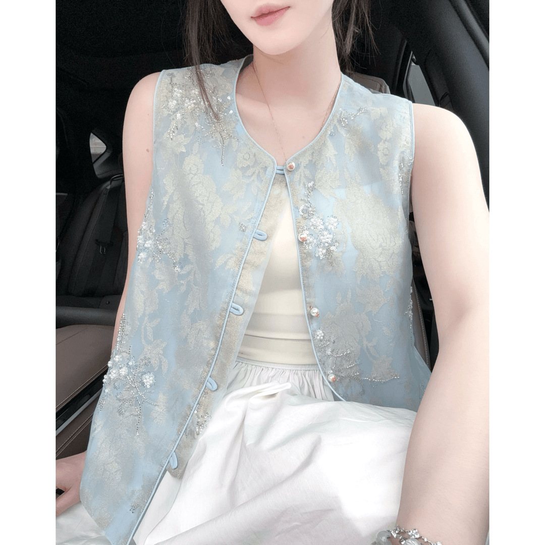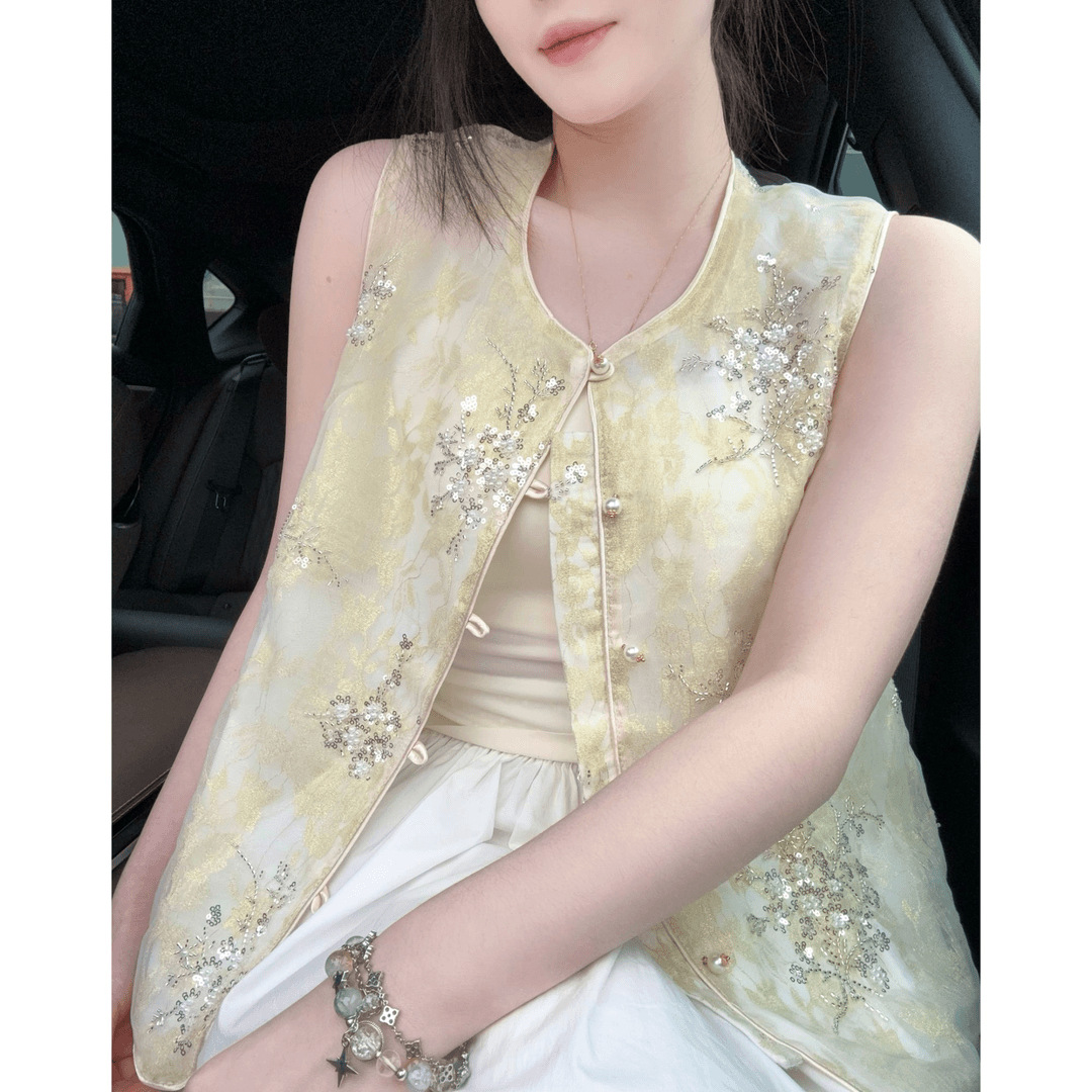 여성을 위한 새로운 중국 스타일의 민족 스타일 조끼, 패셔너블하고 세련된 2025년 새로운 여름 얇은 아우터 조끼