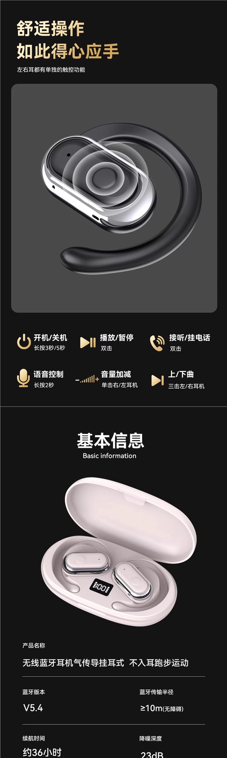 블루투스 헤드셋 무선 2025 새로운 골전도 스포츠 러닝 매우 긴 배터리 수명 이어폰이 아닌 편안하고 오래 지속되며 통증 없음스토어 가기