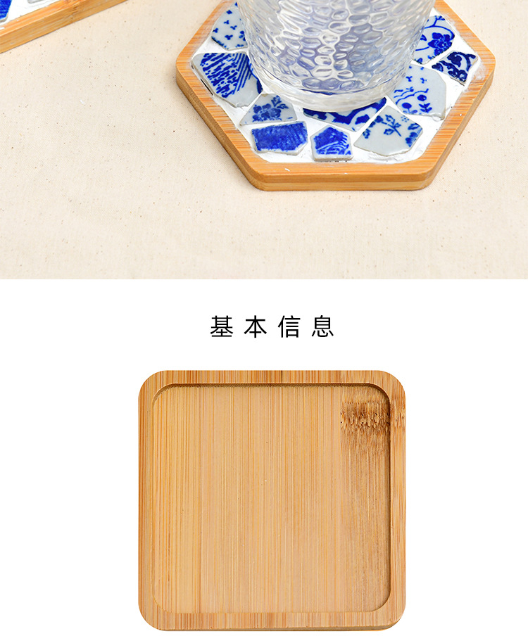 크리 에이 티브 수제 모자이크 절연 컵 받침 대나무 나무 사각형 라운드 테이블 매트 DIY 티 테이블 대나무 트레이베이스