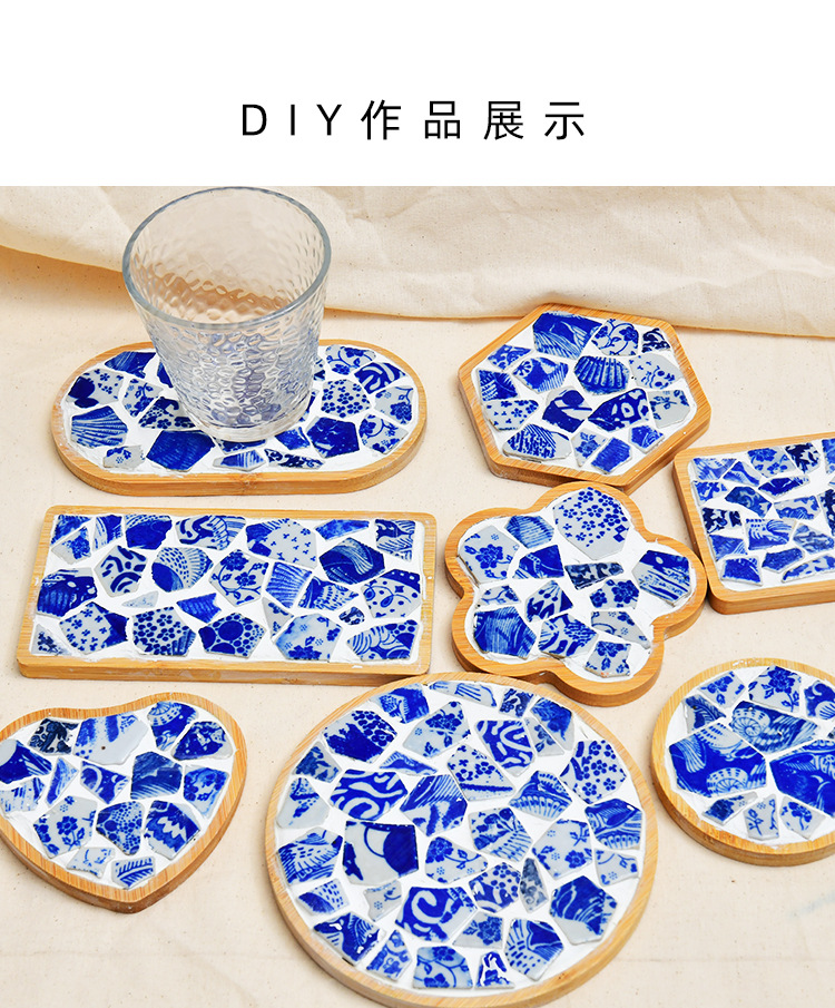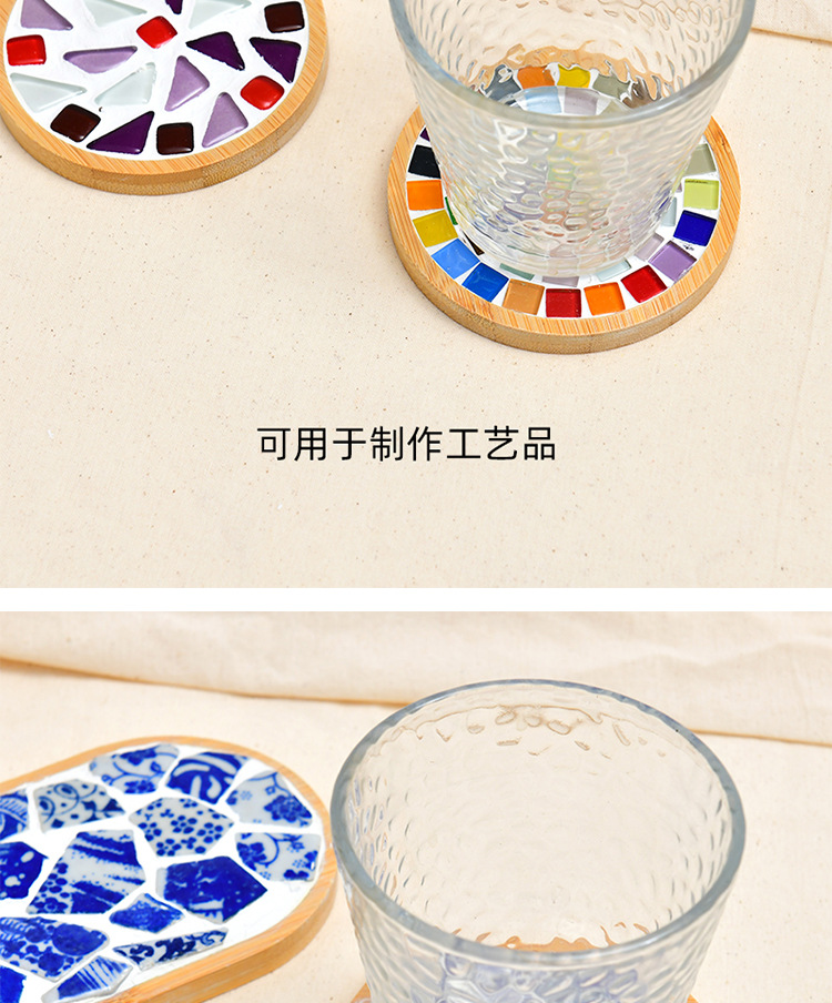 크리 에이 티브 수제 모자이크 절연 컵 받침 대나무 나무 사각형 라운드 테이블 매트 DIY 티 테이블 대나무 트레이베이스스토어 가기