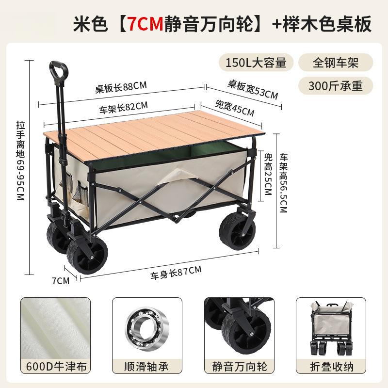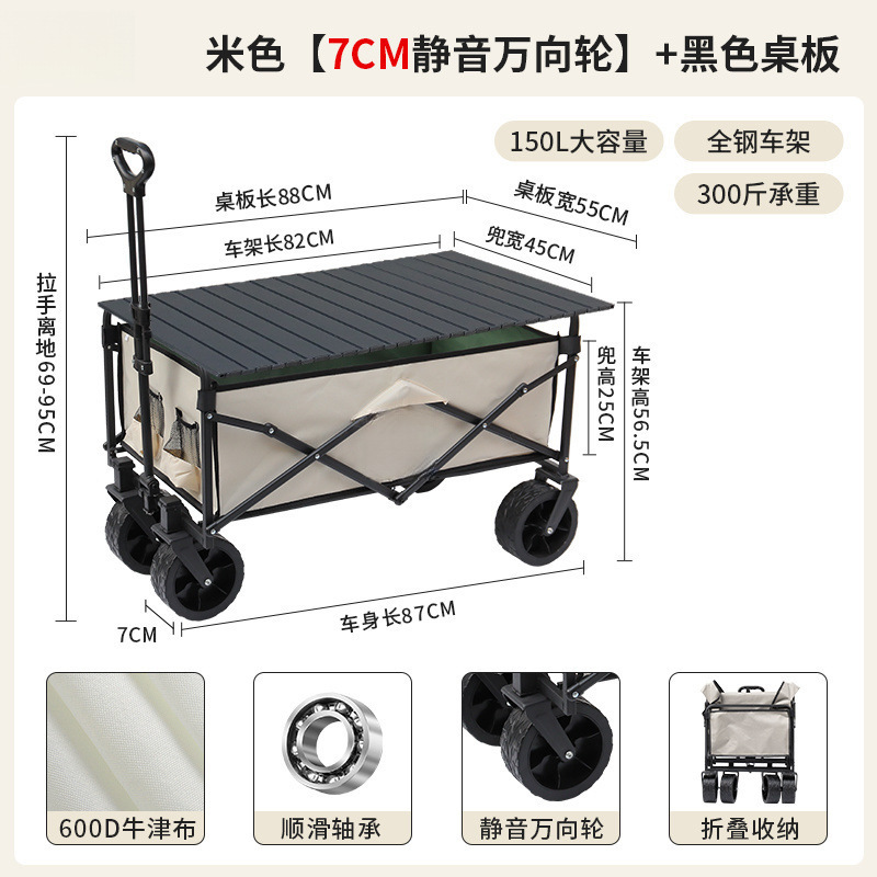• 블랙 [이중 두꺼운 옥스포드 천]-대형/ 8inch 오프로드 휠/더블 브레이크/팁 버킷 + 우드 그레인 테이블