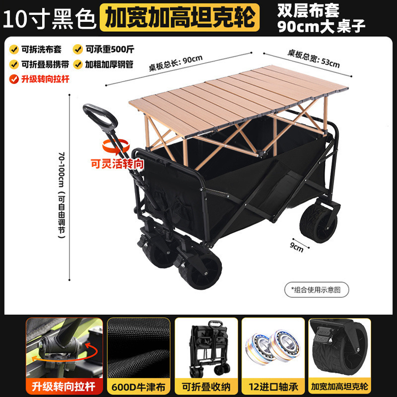 • 블랙 [이중 두꺼운 옥스포드 천] - 상단 구성 / 10inch 탱크 휠 / 더블 브레이크 + 강화된 블랙 테이블