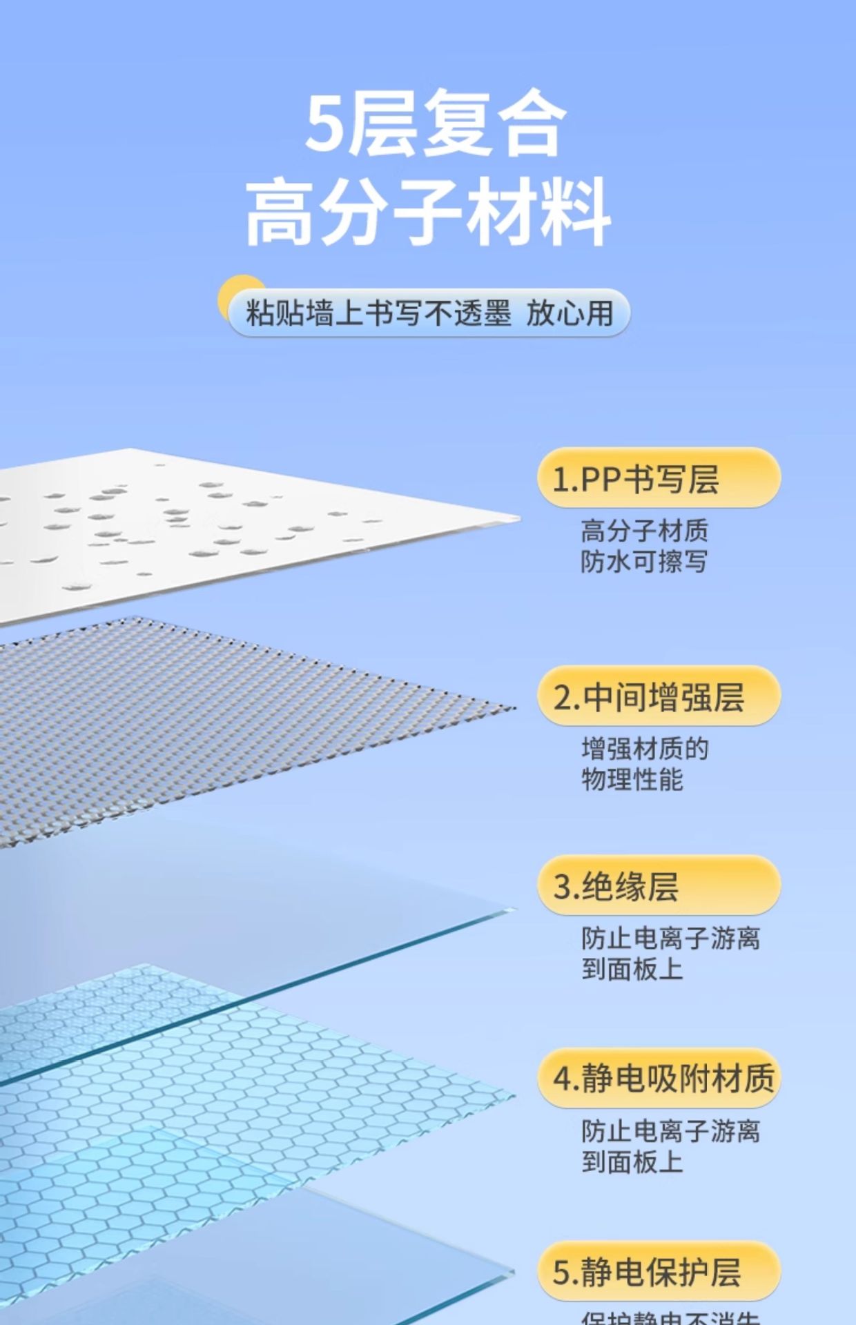 • 접착제가 없고 벽을 손상시키지 않는 정전기 화이트보드 스티커 [60*100cm2 시트]