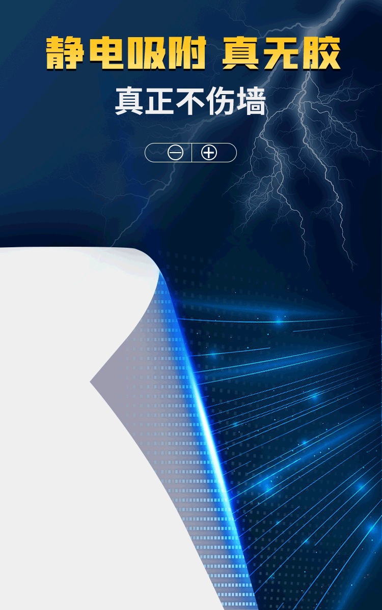 • 정전기 흡착 - 강력한 흡입력 - 접착제가 없어 벽이 손상되지 않음↓↓↓