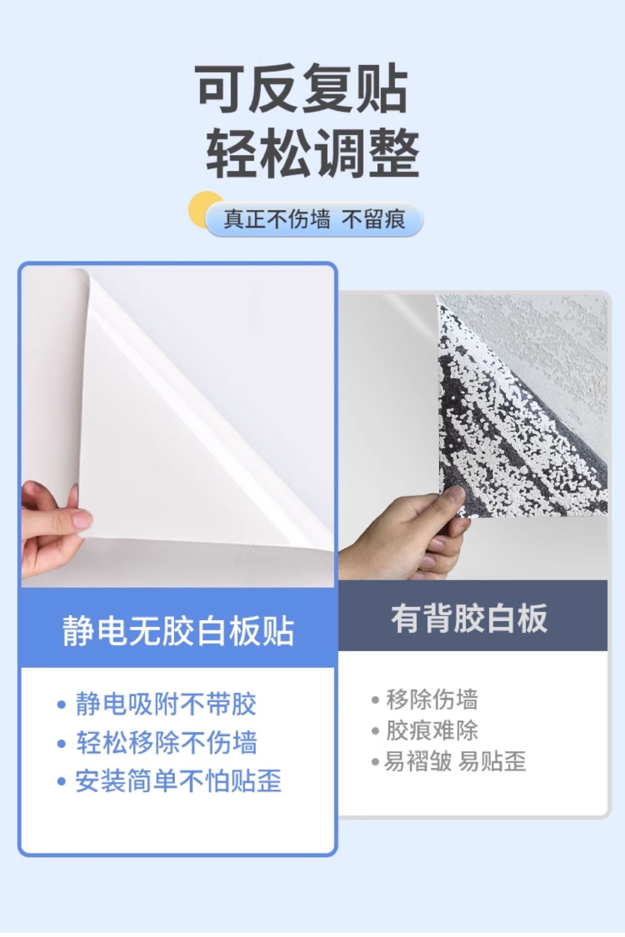• 정적 화이트보드 스티커 [90*100cm2 시트] 접착제가 없고 벽을 손상시키지 않습니다.