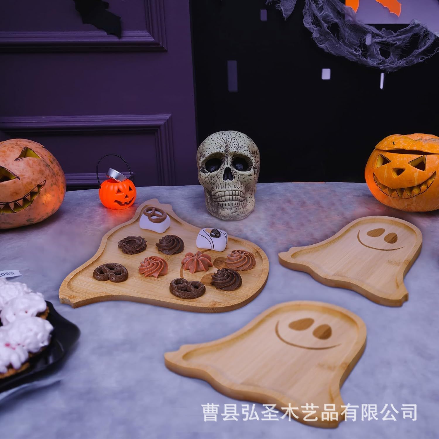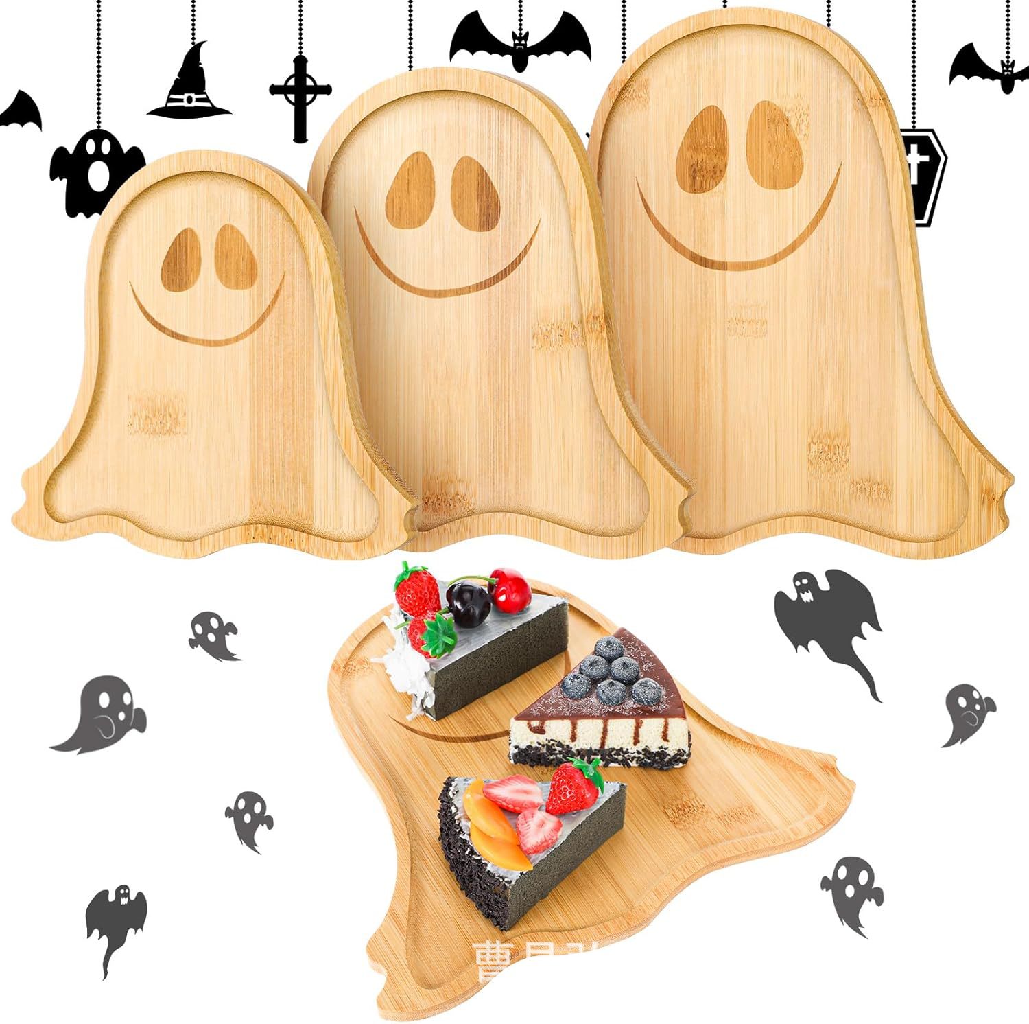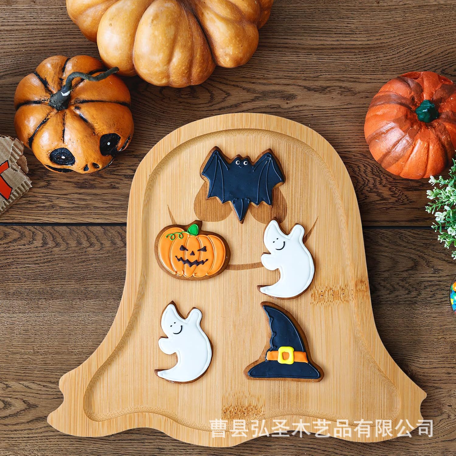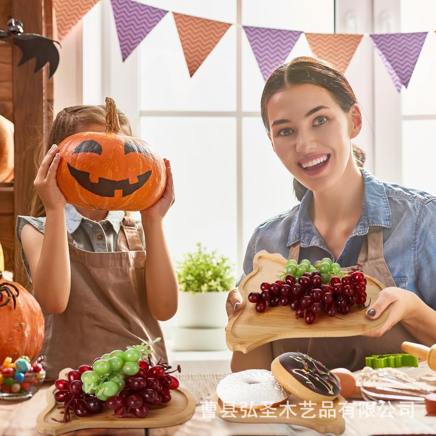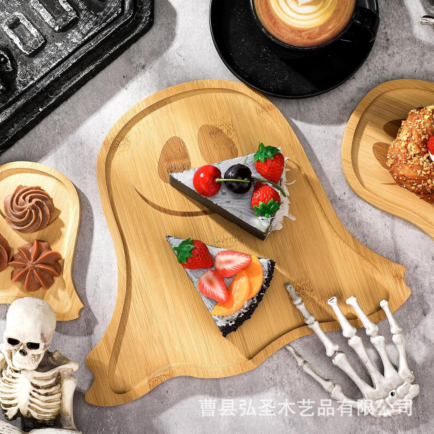 대나무 트레이 할로윈 파티 케이크 접시 디저트 서빙 트레이 치즈 보드 크리 에이 티브 어린이 단단한 나무 식품 보충 트레이스토어 가기