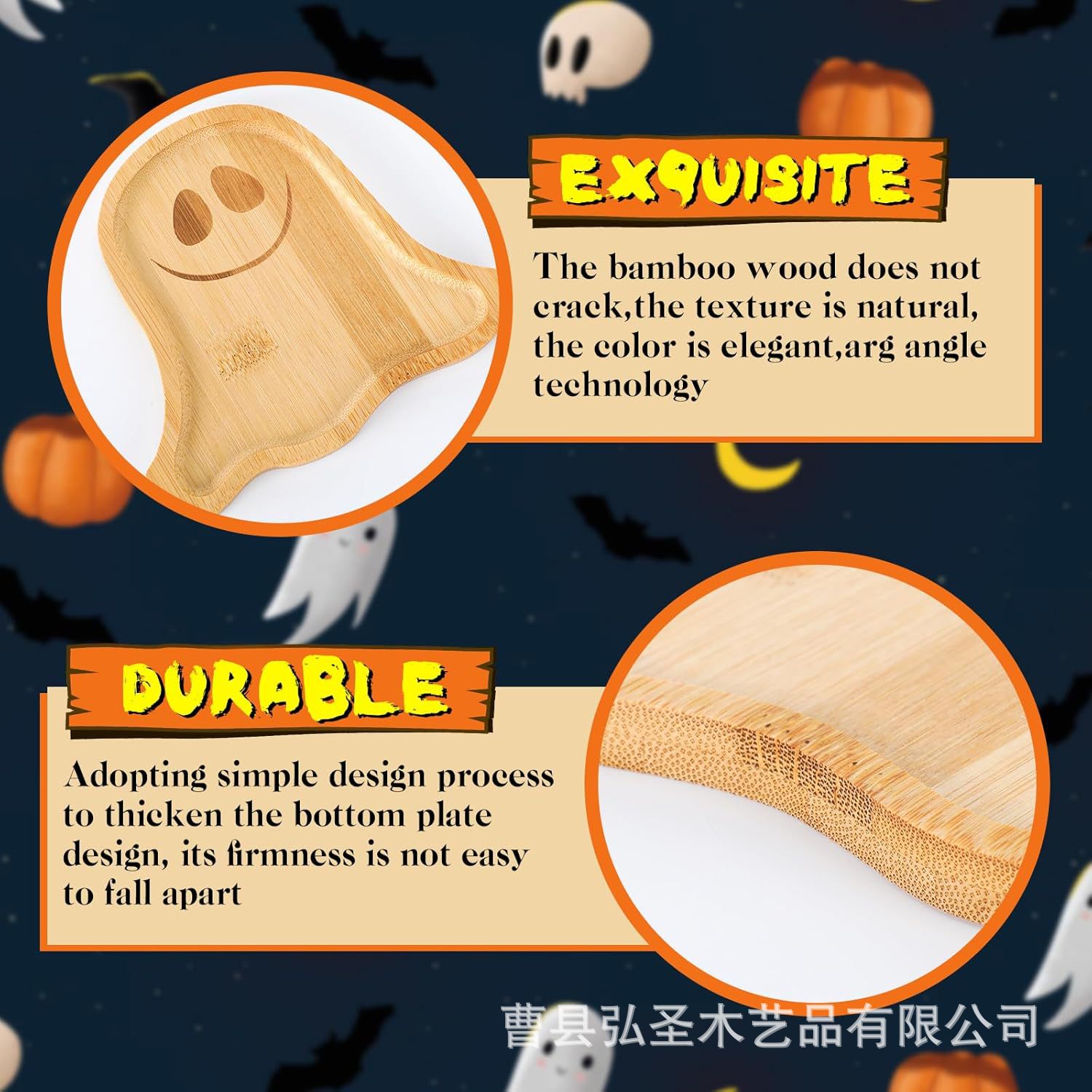 대나무 트레이 할로윈 파티 케이크 접시 디저트 서빙 트레이 치즈 보드 크리 에이 티브 어린이 단단한 나무 식품 보충 트레이