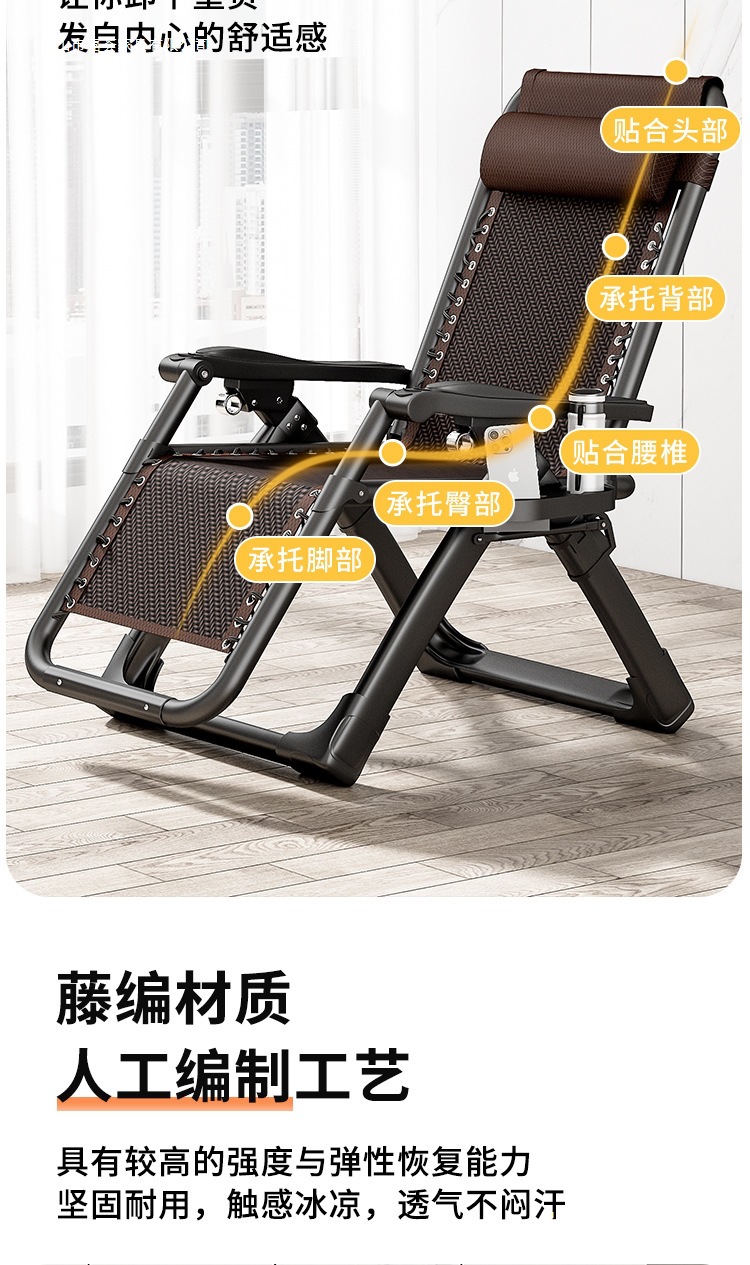 Yiquda 안락 의자 점심 시간 접이식 등나무 의자 낮잠 침대 발코니 홈 레저 노인 특별 등나무 등받이 의자스토어 가기