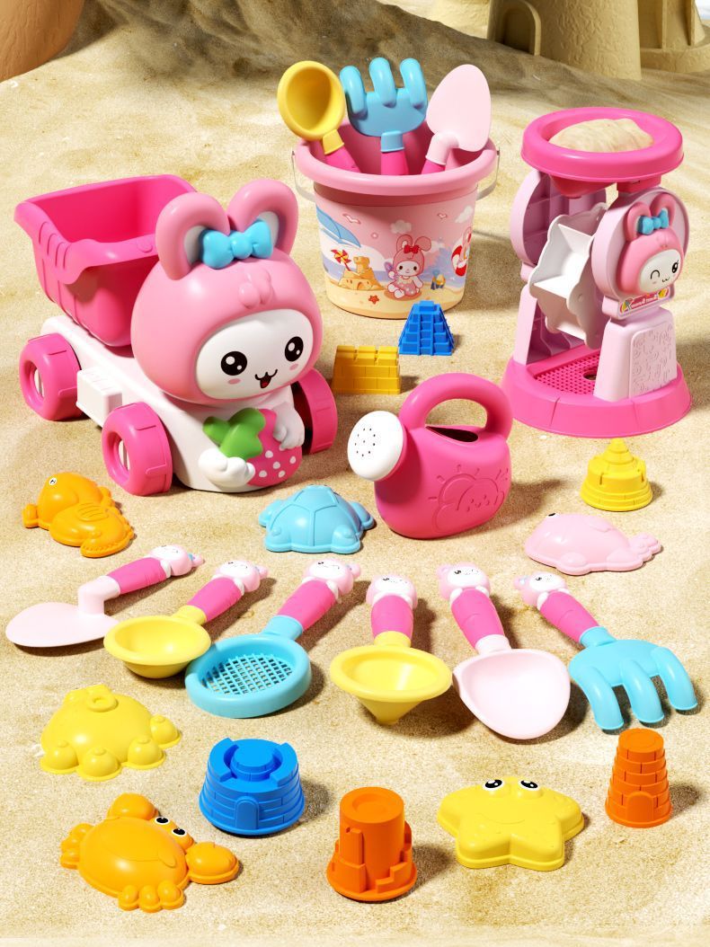 두꺼운 해변 장난감 도매 모래 놀이 세트 모래 파기 도구 삽 소녀 어린이 물 모래 시계 1 ~ 3 세 아기스토어 가기
