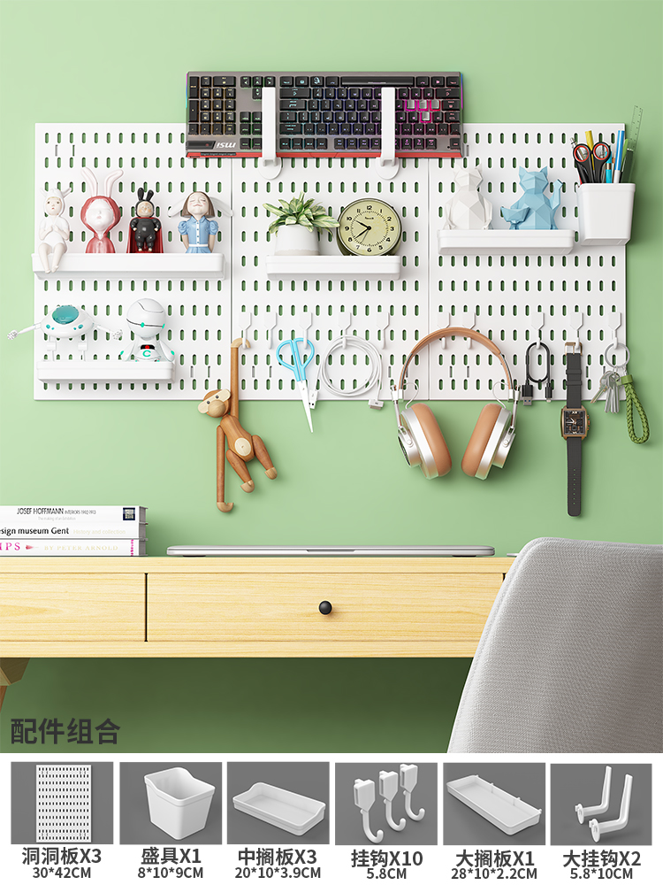 구멍 없는 구멍판 수납선반, 대학생 책상 정리선반, 벽걸이형 게임책 데스크탑 문구류 수납 주방