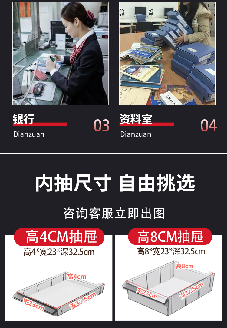 • 두꺼운 조합 27 서랍(도어 포함), 4+8cm 높이 서랍 [기업 지원]