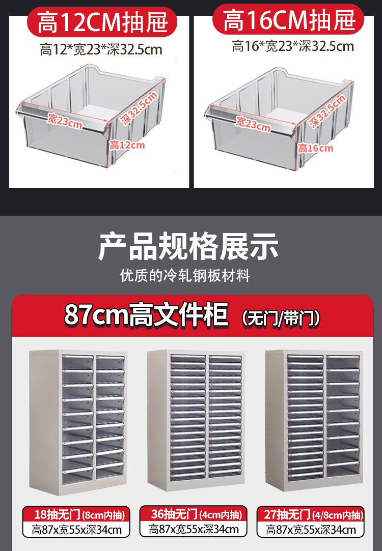• 두꺼운 10도어 서랍, 높이 16cm 서랍 [냉연강판]
