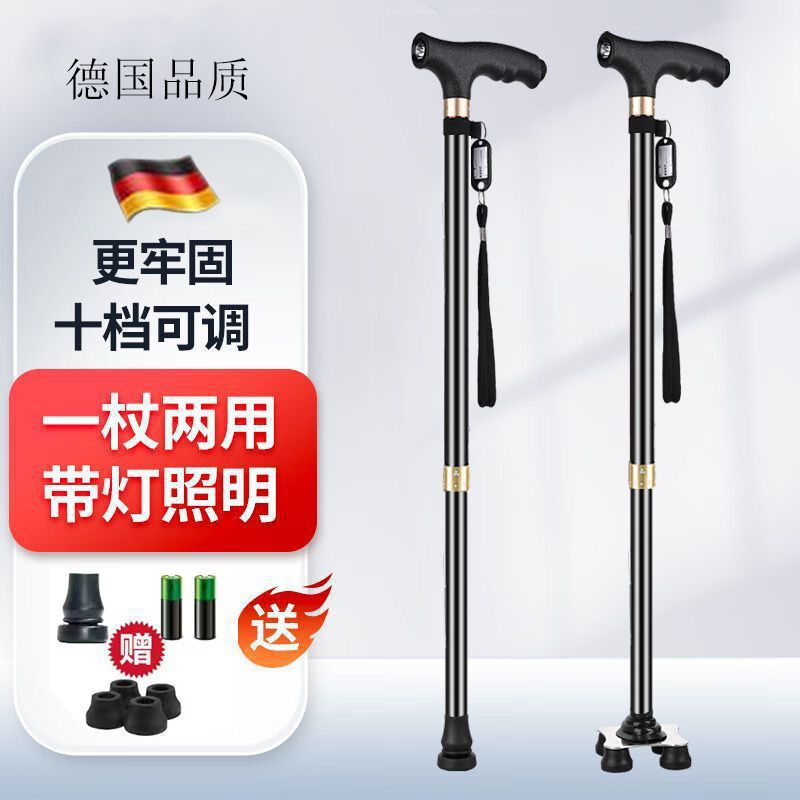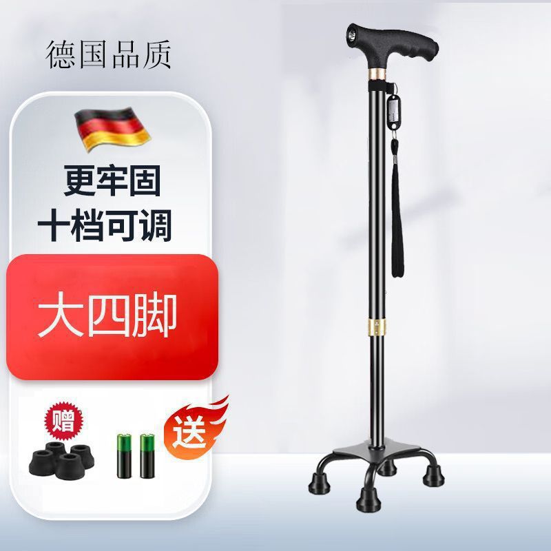 노인용 미끄럼 방지 지팡이, 노인용 4발 지팡이, 경량 다기능 조명, 낙하 방지용 알루미늄 합금 텔레스코픽 지팡이
