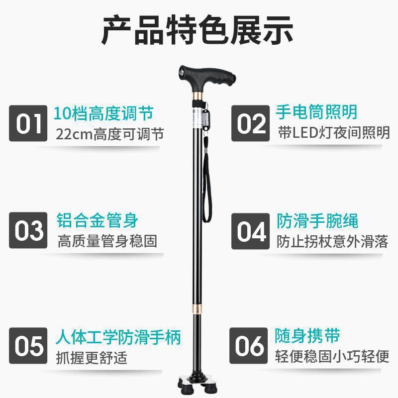 노인용 미끄럼 방지 지팡이, 노인용 4발 지팡이, 경량 다기능 조명, 낙하 방지용 알루미늄 합금 텔레스코픽 지팡이스토어 가기