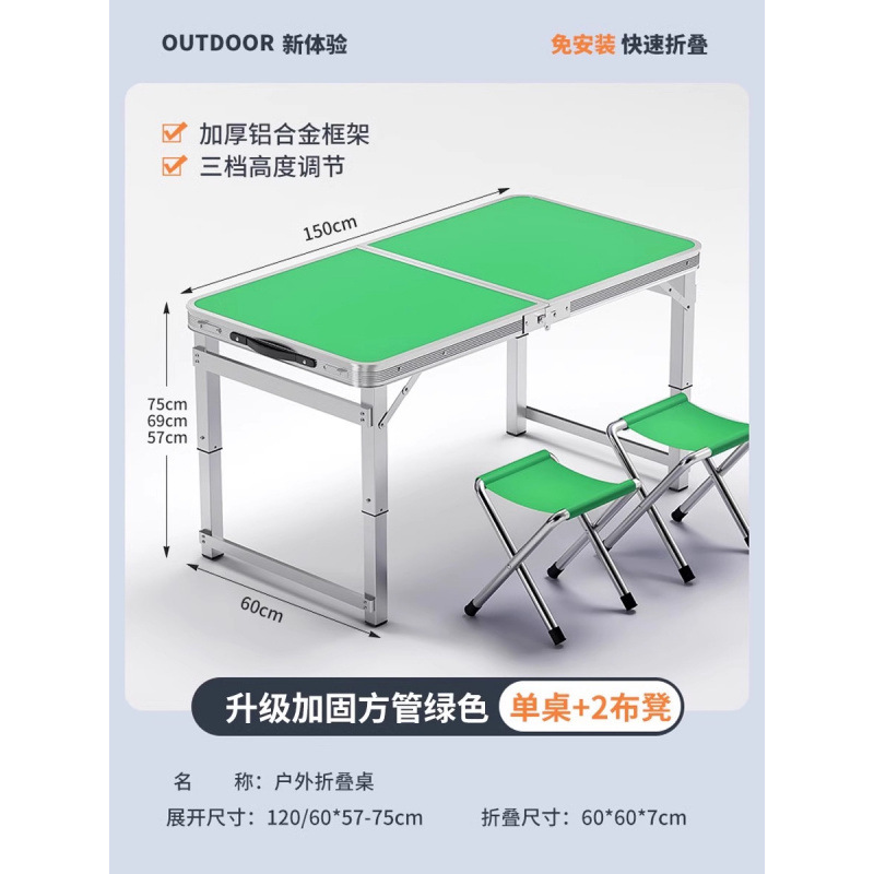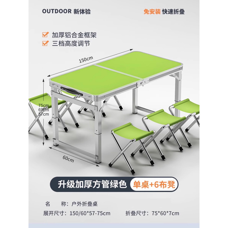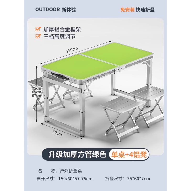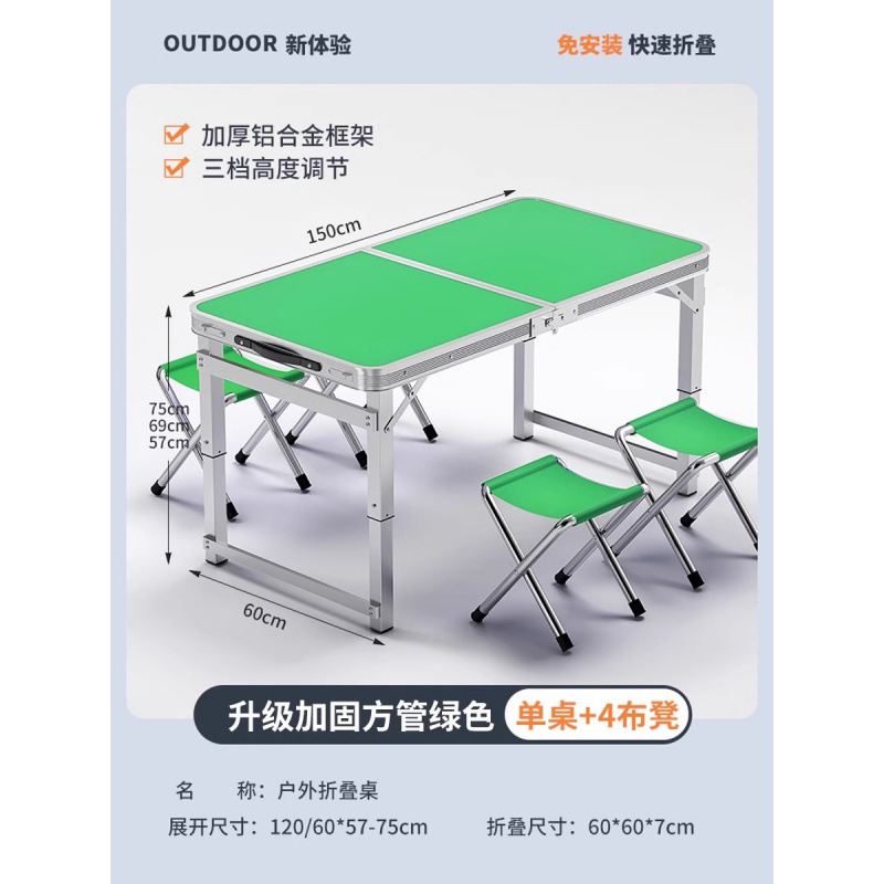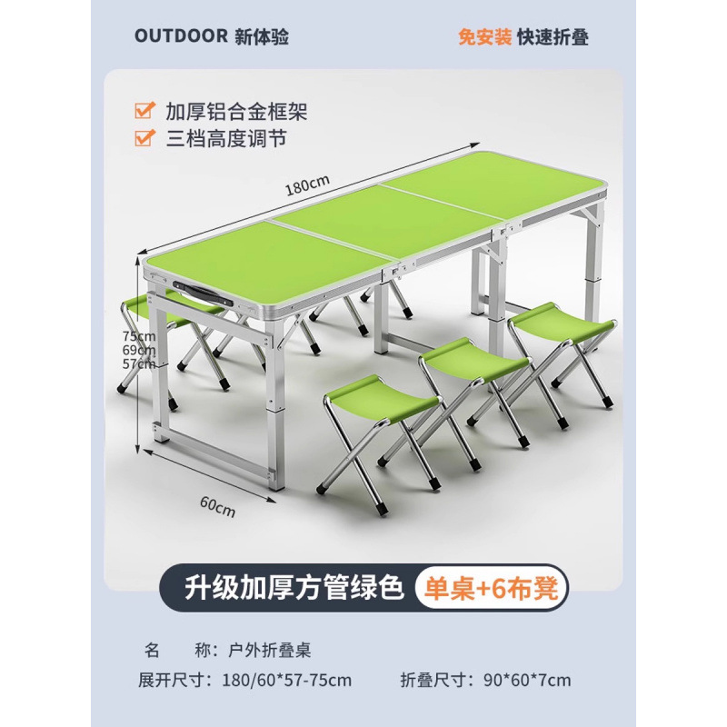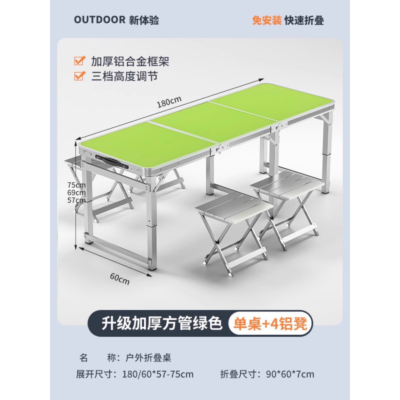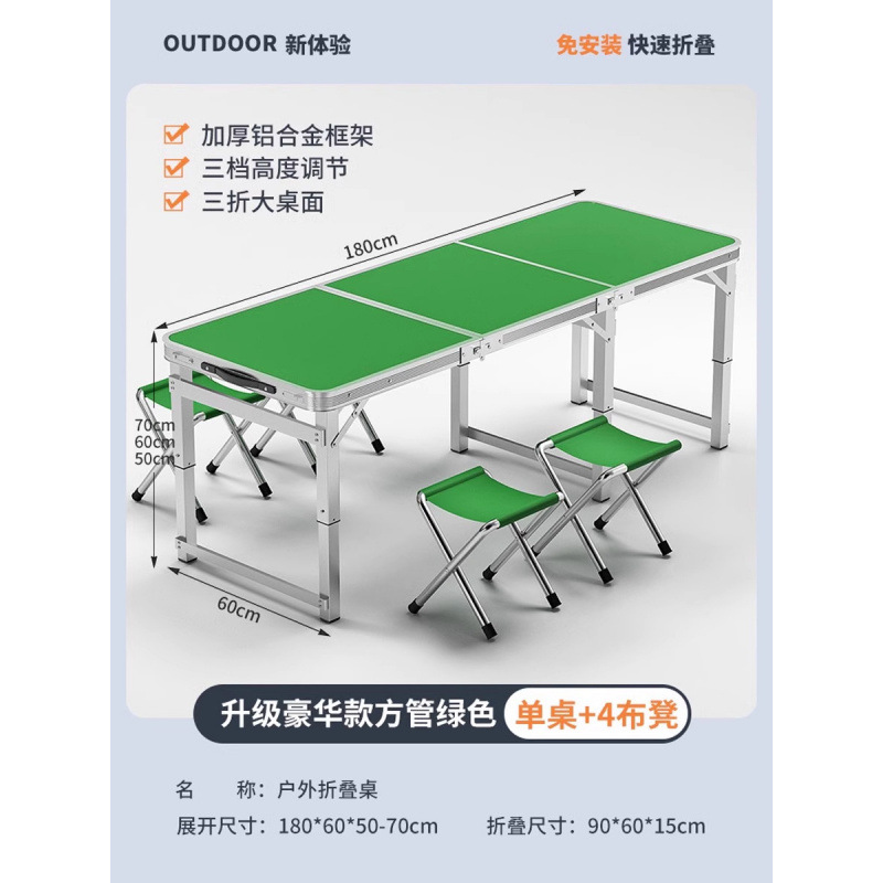 • [매우 안정적인 대형 사각 튜브] 180 녹색 + 알루미늄 스툴 4개 - 우산 구멍이 필요한 경우 별도로 참고하세요.
