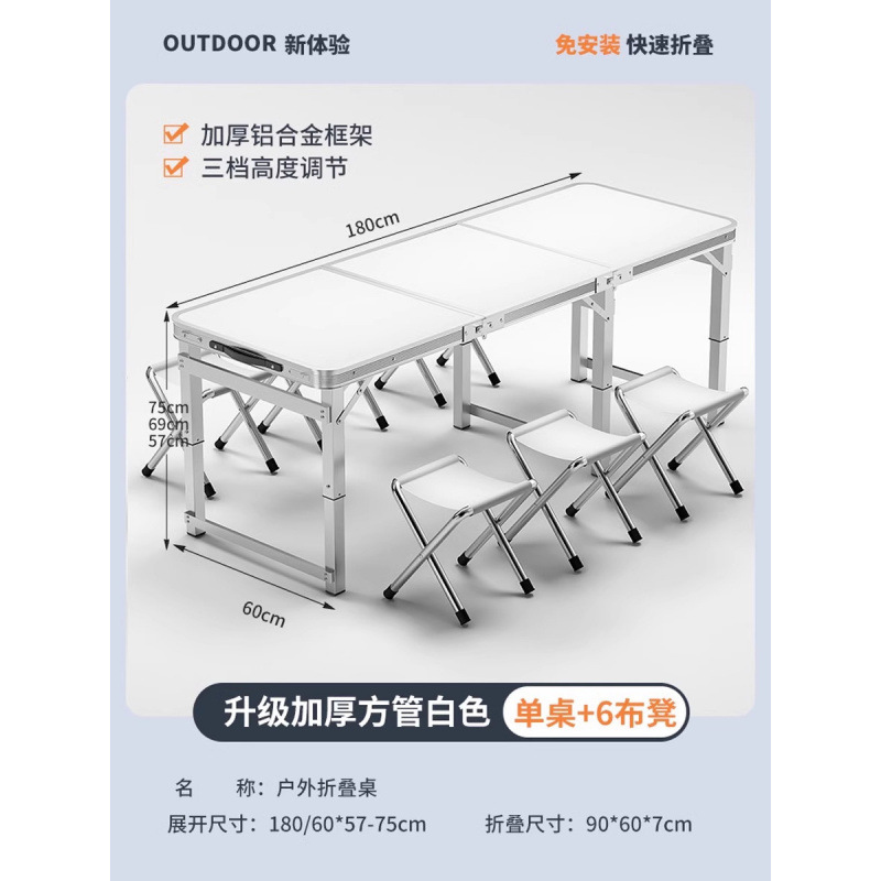 • [매우 안정적인 대형 사각 튜브] 흰색 180개 + 알루미늄 스툴 4개 - 우산 구멍이 필요한 경우 별도로 참고하세요.