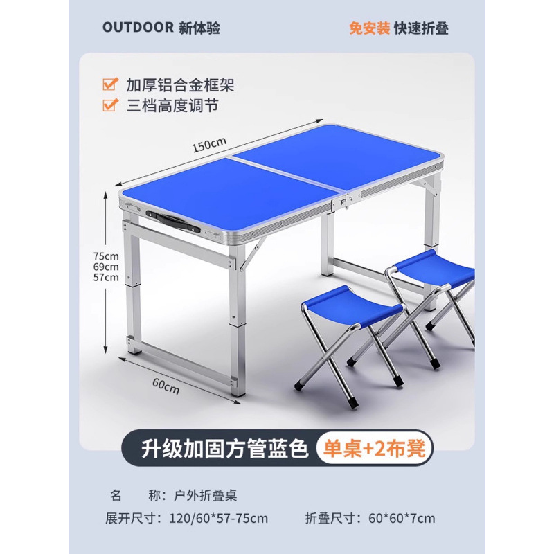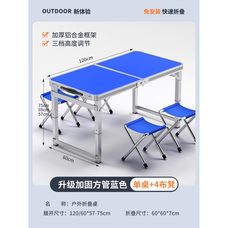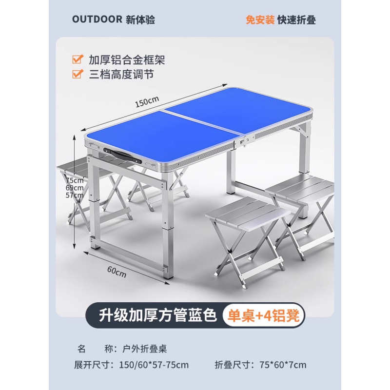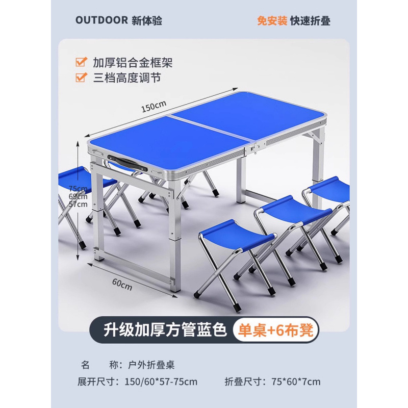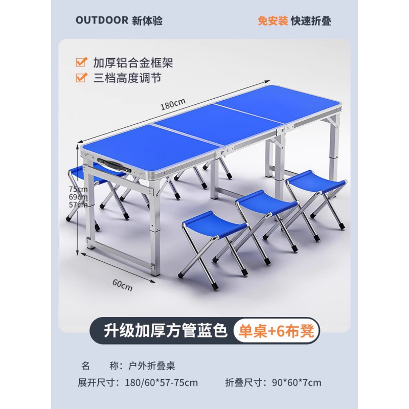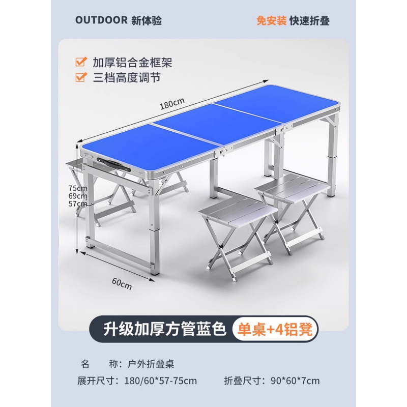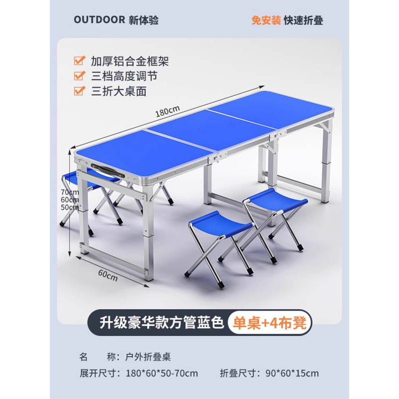 • [매우 안정적인 대형 사각 튜브] 180 파란색 + 알루미늄 스툴 4개 - 우산 구멍이 필요한 경우 별도로 참고하세요.