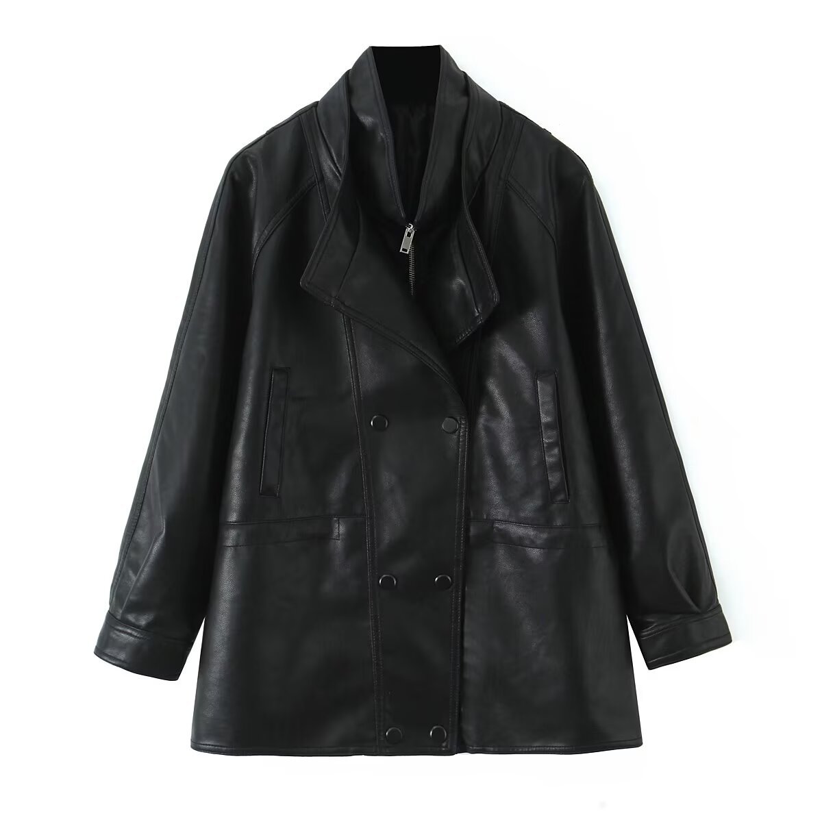 PB&ZA 여성 2025 가을 신상 와이드 버전 다용도 더블 브레스트 슬림 더블 칼라 오토바이 재킷스토어 가기