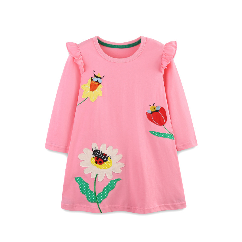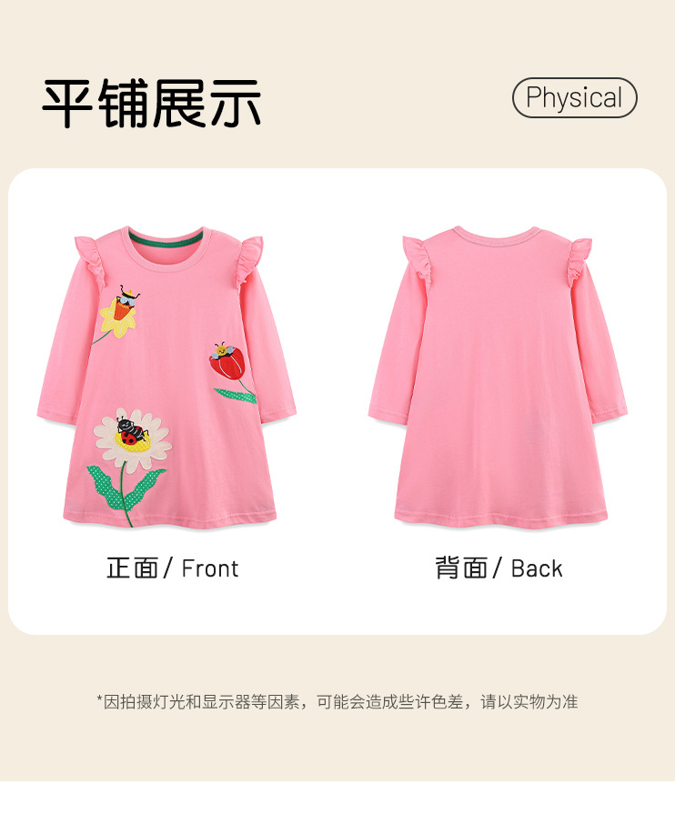 유럽과 미국 스타일의 소녀 긴팔 드레스 가을 새로운 플라잉 슬리브 라운드 넥 공주 드레스 패션 패치 어린이 드레스 Dropshipping스토어 가기