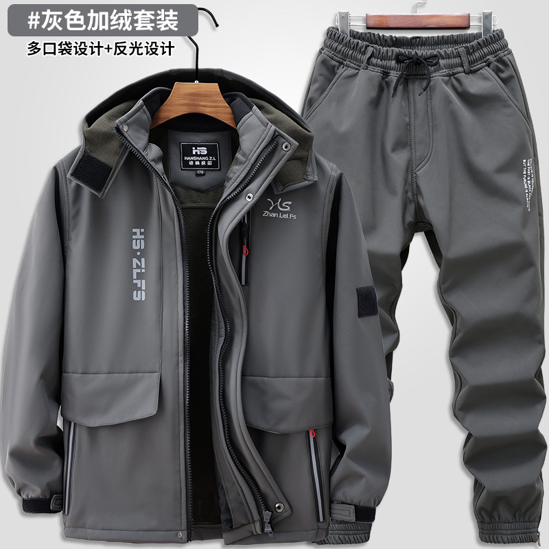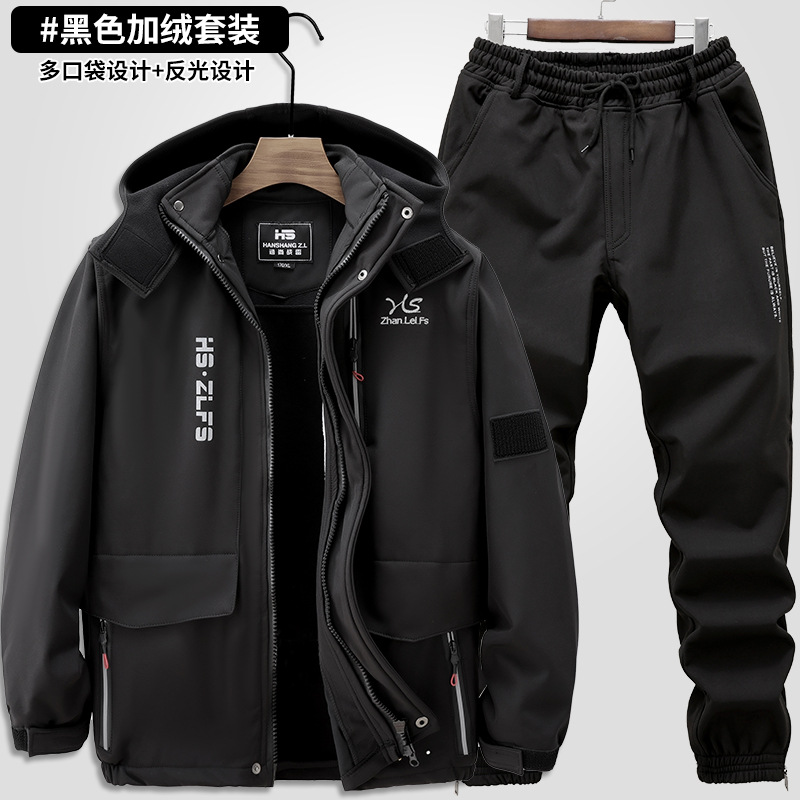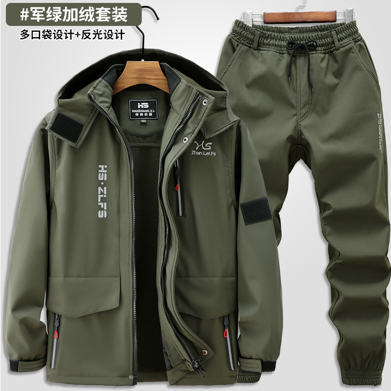 남성용 가을 겨울 벨벳 재킷 정장, 방풍 및 방수 야외 등산복, 방한 및 따뜻한 면 의류, 두꺼운 작업복