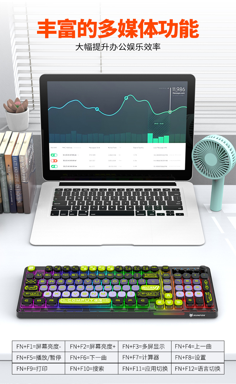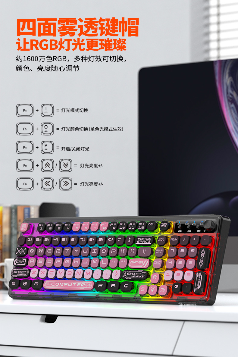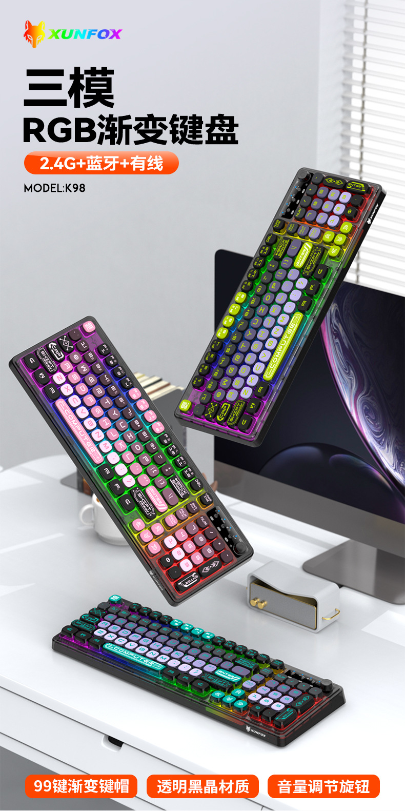 炫银狐k98无线蓝牙三模RGB键盘(是薄膜键盘)