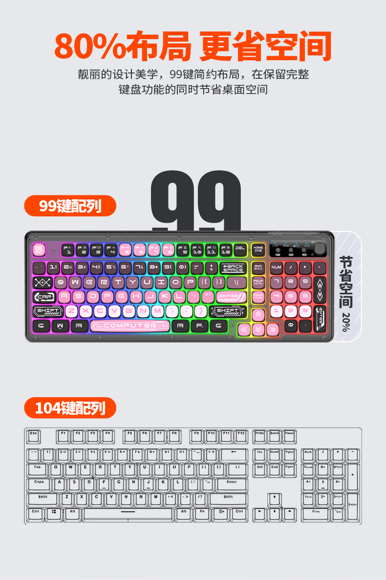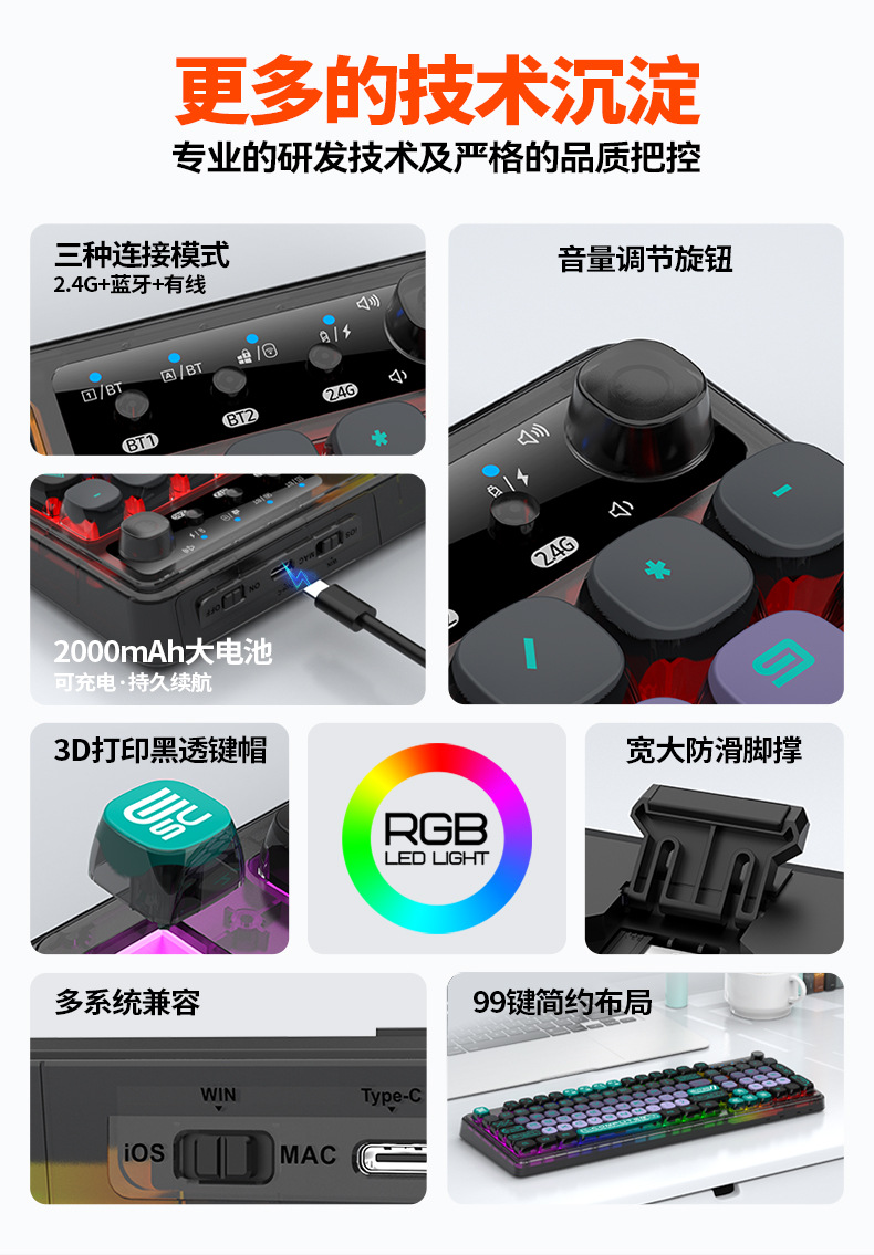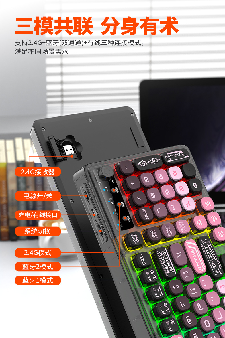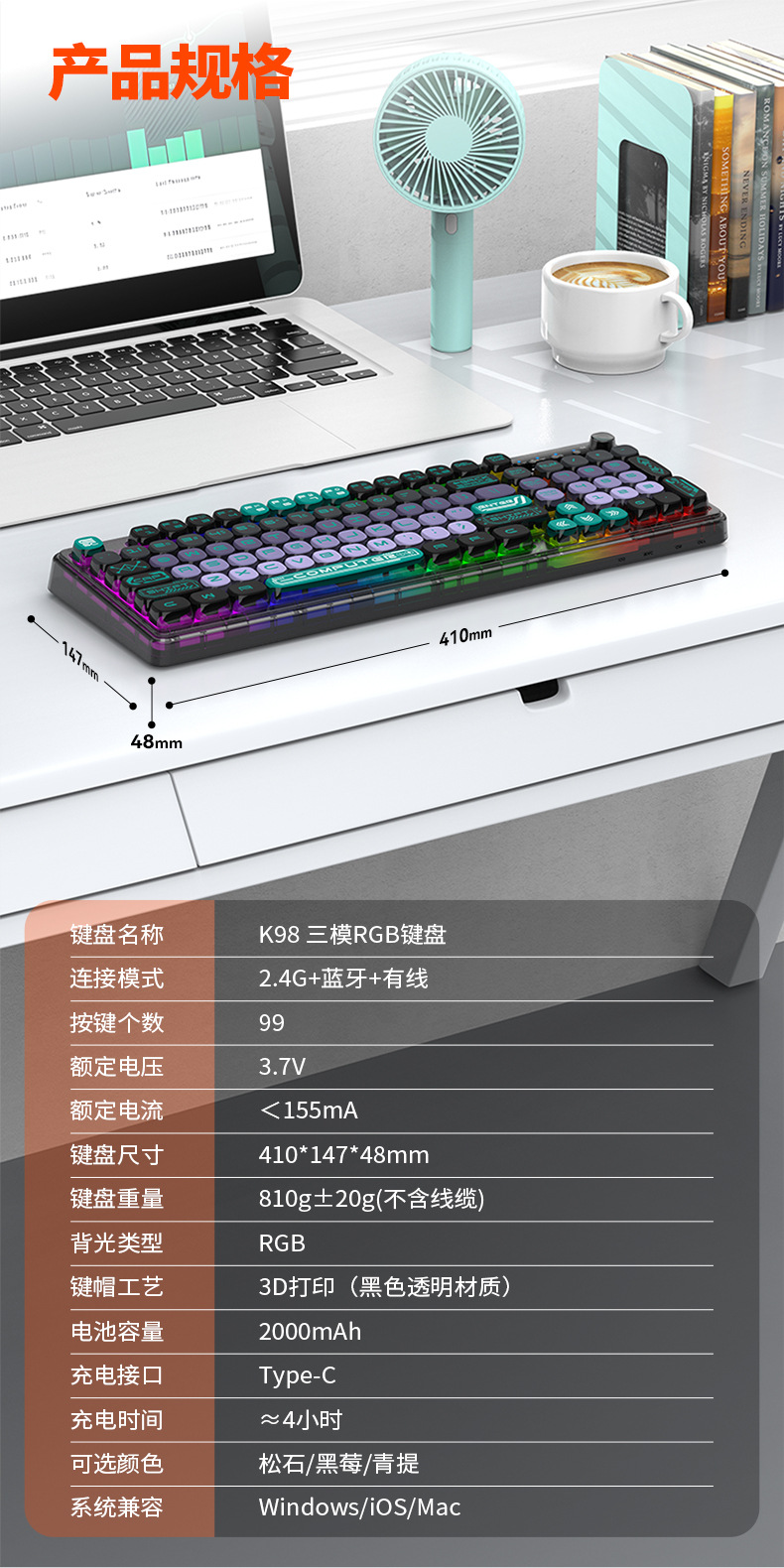 炫银狐k98无线蓝牙三模RGB键盘(是薄膜键盘)