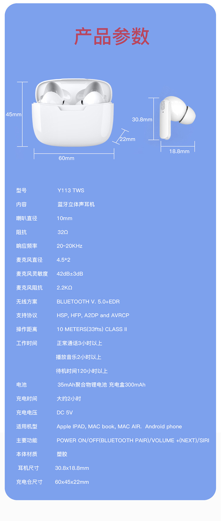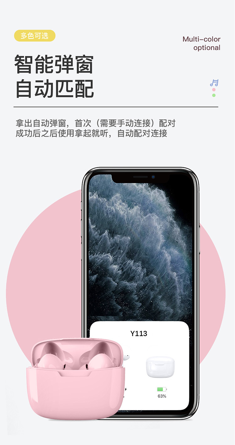 국경을 넘는 인기 상품 Y113 무선 블루투스 이어폰, 인이어형 양쪽 귀 착용 스포츠형, 긴 배터리 수명, 고화질 통화