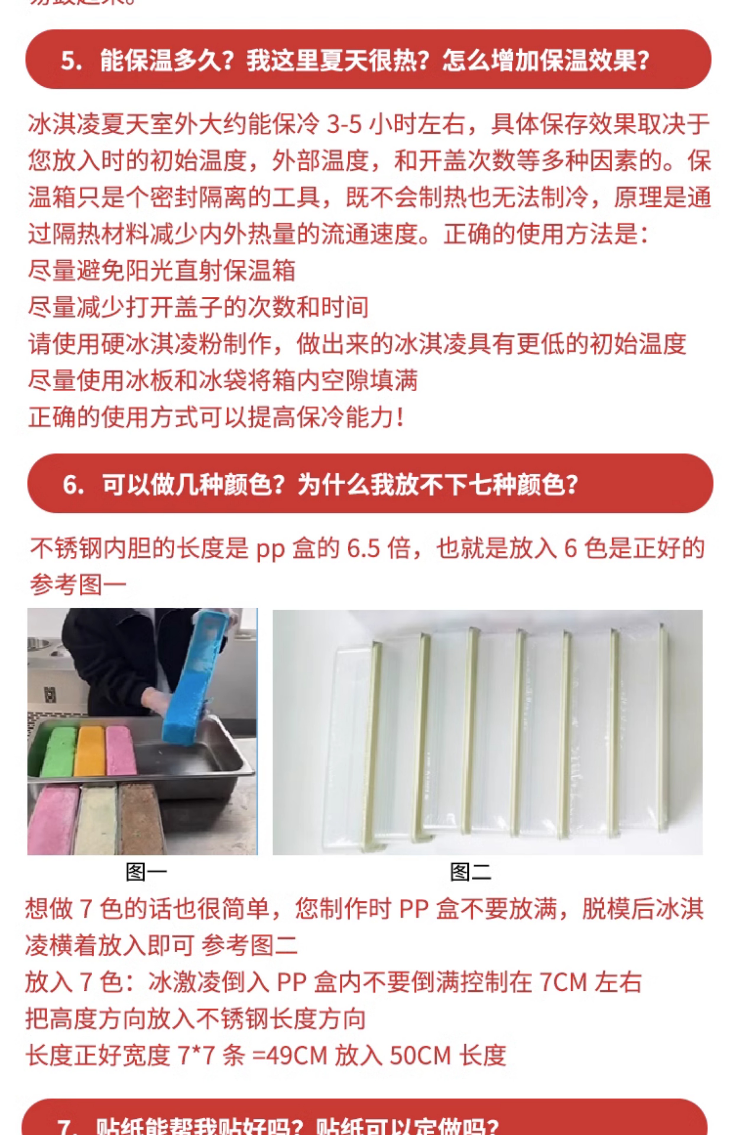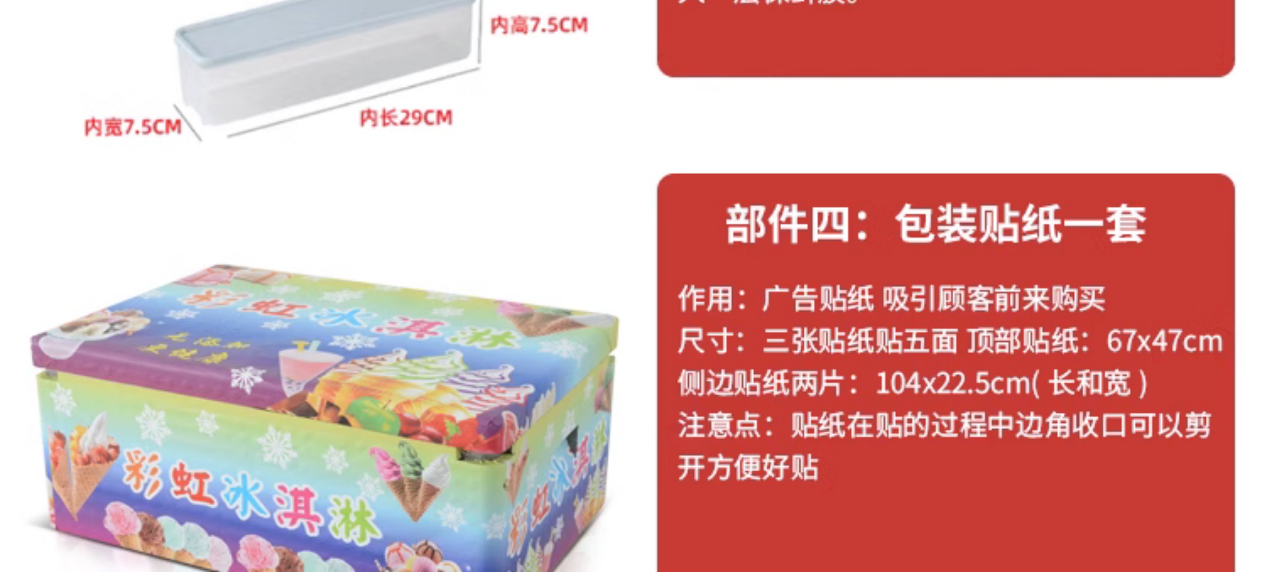 무지개 수제 아이스크림 상업 스톨 EPP 절연 상자 다채로운 아이스크림 스테인레스 스틸 식사 그릇 얼음 보드 스티커