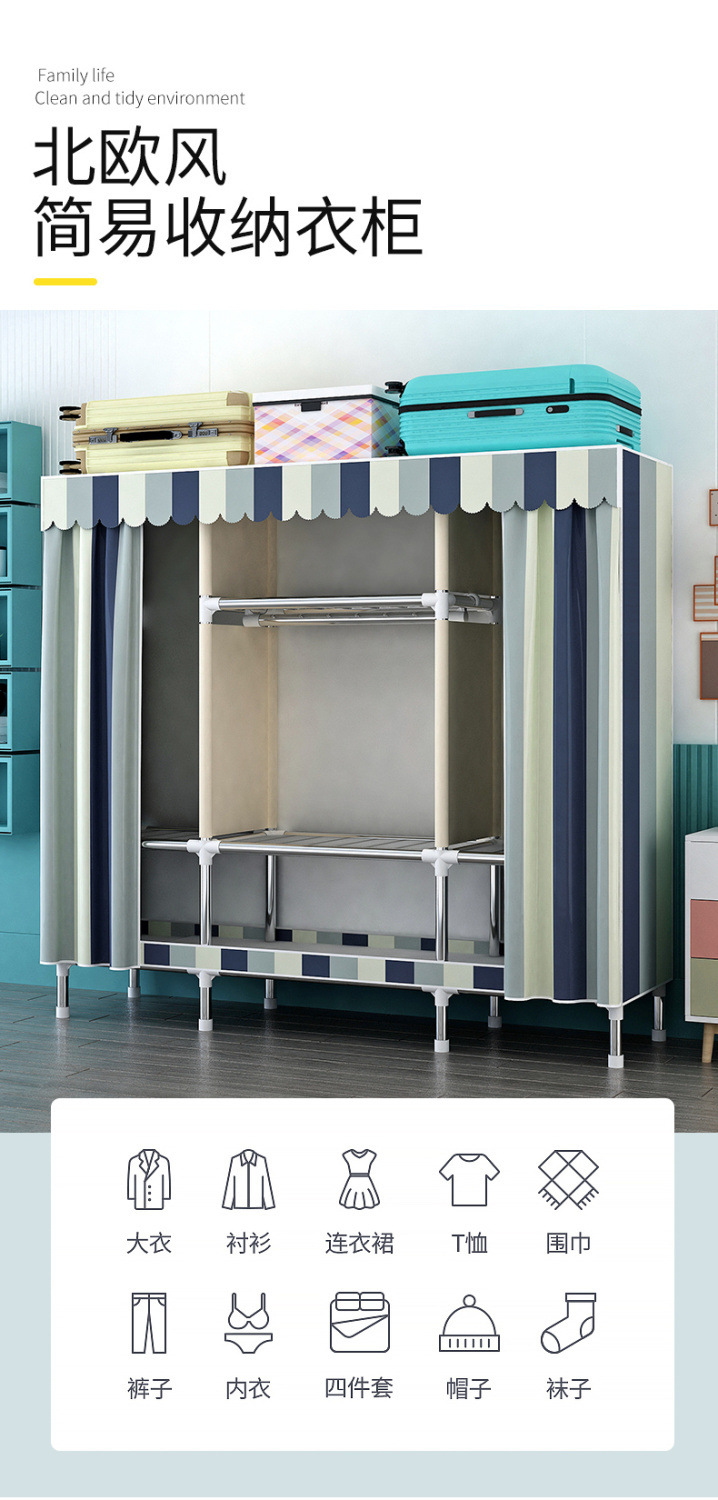 옷장 홈 침실 간단한 조립 보관 캐비닛 옷걸이 바닥 스탠딩 천 옷장 임대실 기숙사 옷장