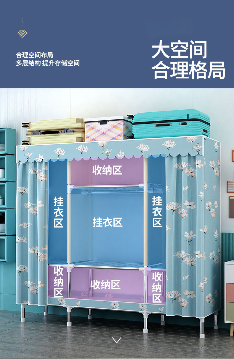 옷장 홈 침실 간단한 조립 보관 캐비닛 옷걸이 바닥 스탠딩 천 옷장 임대실 기숙사 옷장스토어 가기