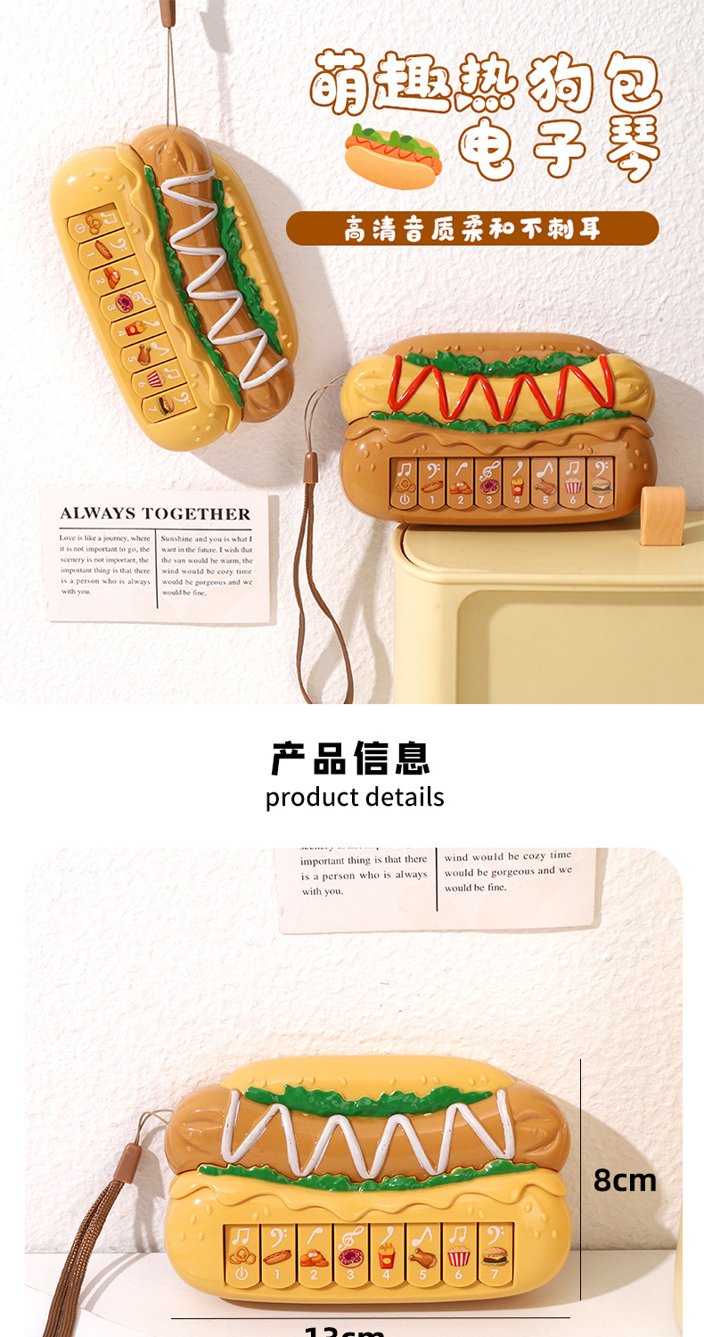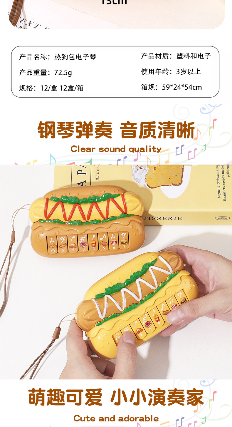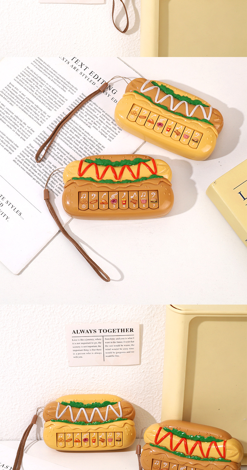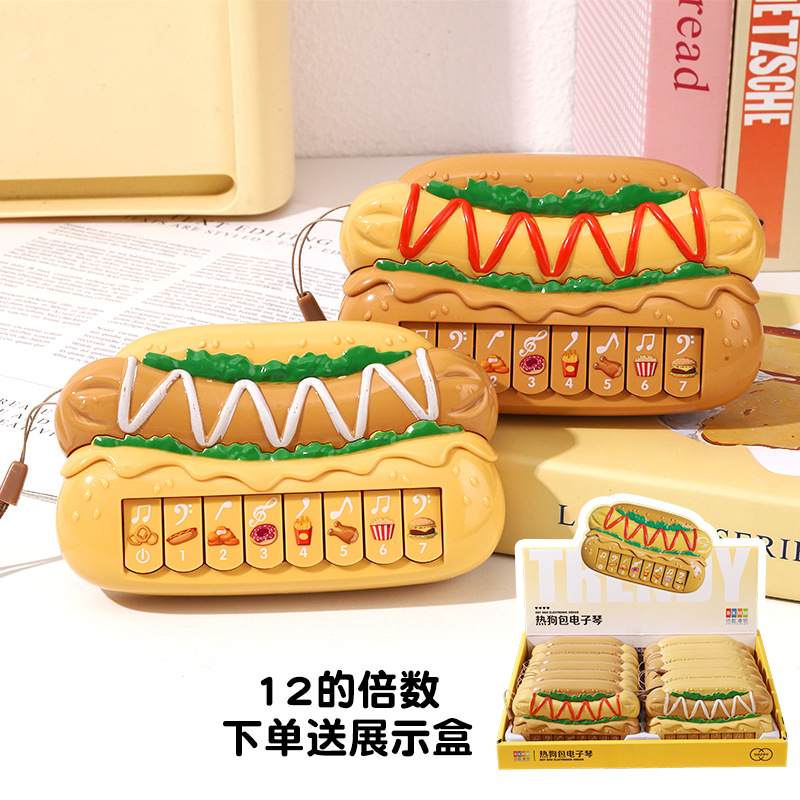 새로운 핫도그 가방 전자 오르간 어린이 귀여운 음악 장난감 미니 휴대용 포켓 전자 오르간 컬러 박스