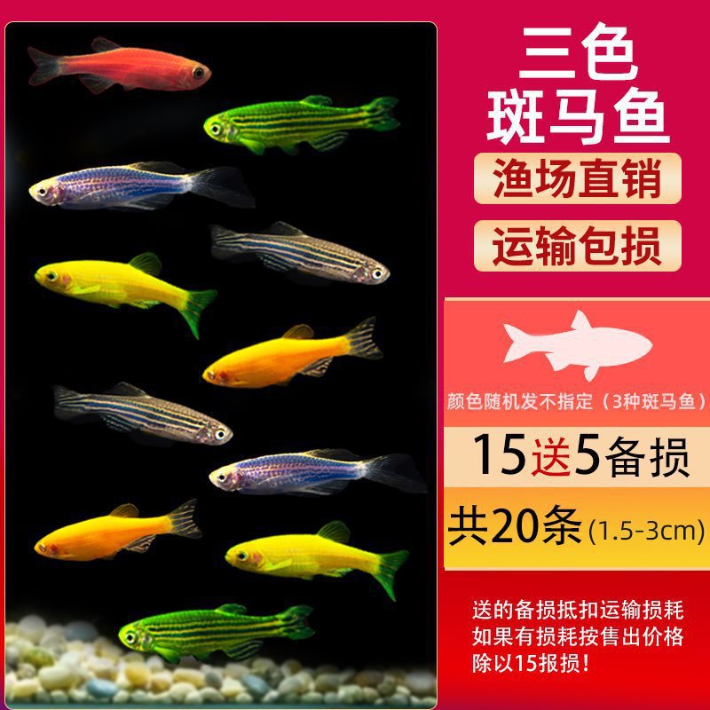 • ☼ 삼색 얼룩말 물고기 세트 (2~3cm 얼룩말 물고기 3종 랜덤 15개, 5개 무료, 총 20개) + 생선사료, 예비품 무료