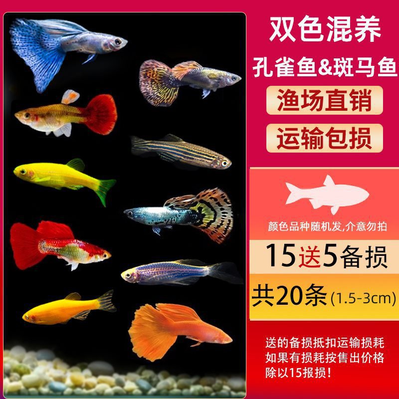 • ☼ 2색 얼룩말 물고기 세트 (2-3cm 얼룩말 물고기 2마리, 랜덤 15마리, 5마리, 총 20마리) + 생선사료, 예비품 무료