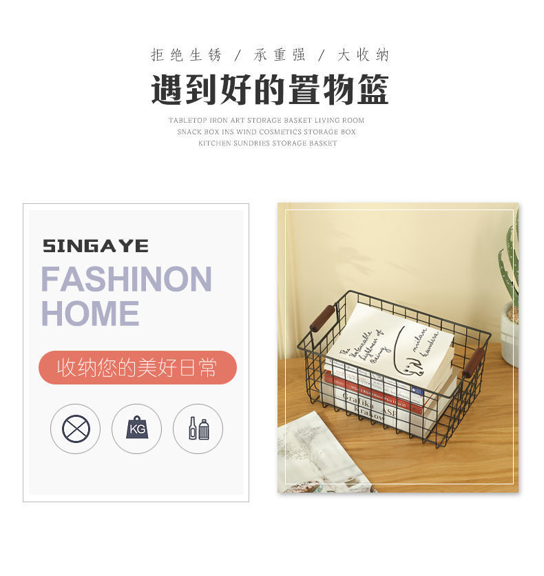 북유럽 스타일 철 보관 바구니 의류 보관 욕실 주방 스낵 파일 보관 바구니 데스크탑 보관 바구니