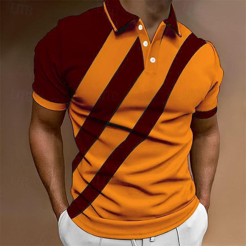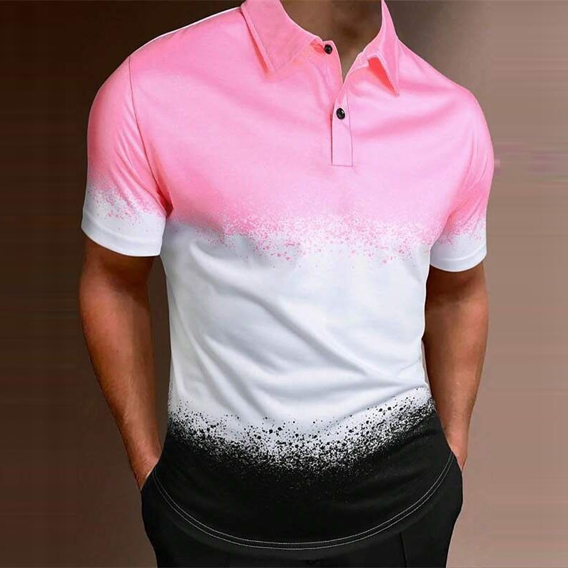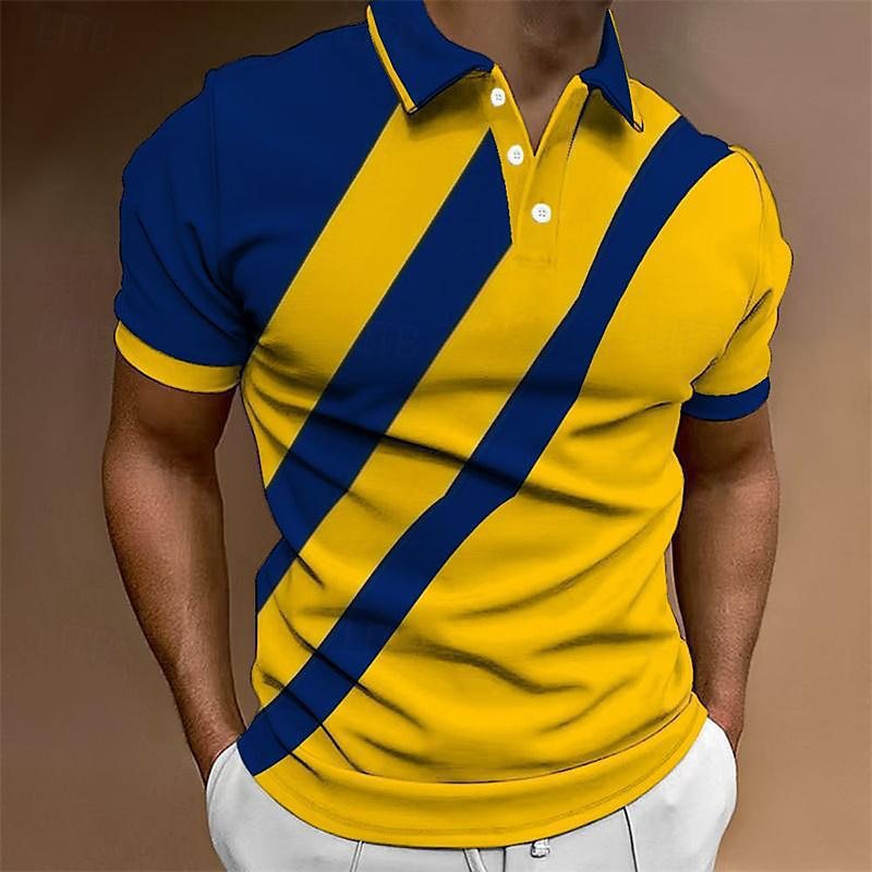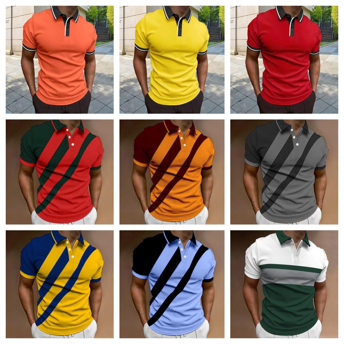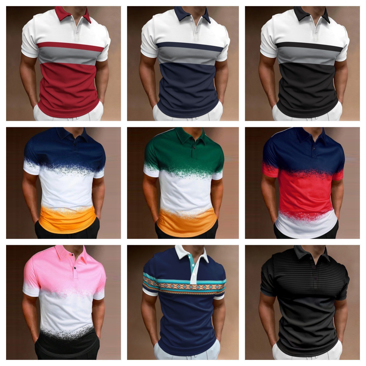 Aliexpress 남성 캐주얼 옷깃 반팔 폴로 셔츠 3D 인쇄 멀티 컬러 버튼 여름 골프 셔츠 없음