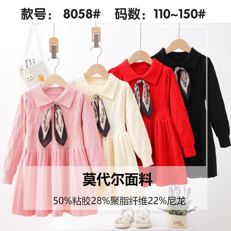 여자 드레스 니트 가을, 겨울 2025 유행 아기 소녀 대학 공주 스웨터 드레스
