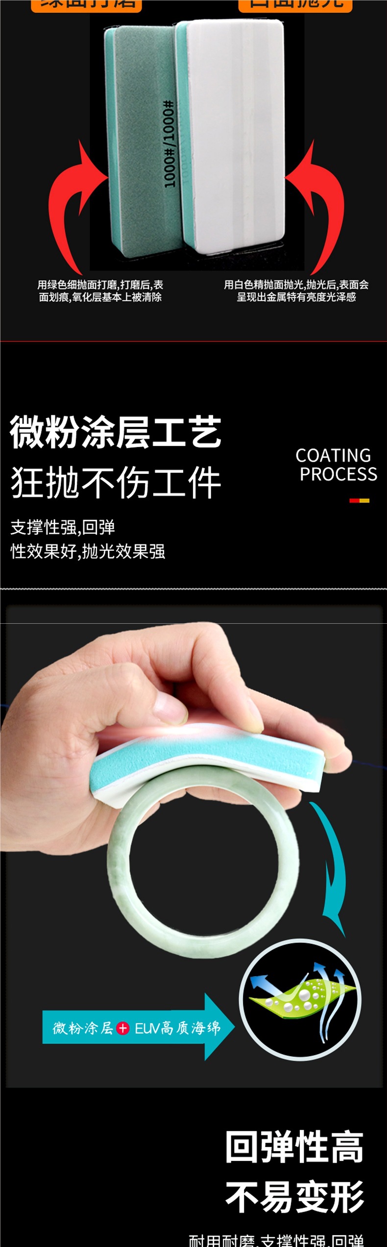 Wenwan 연마 보드 청록색 옥 연마 양면 스폰지 나무 사포 블록 자동차 페인트 도구