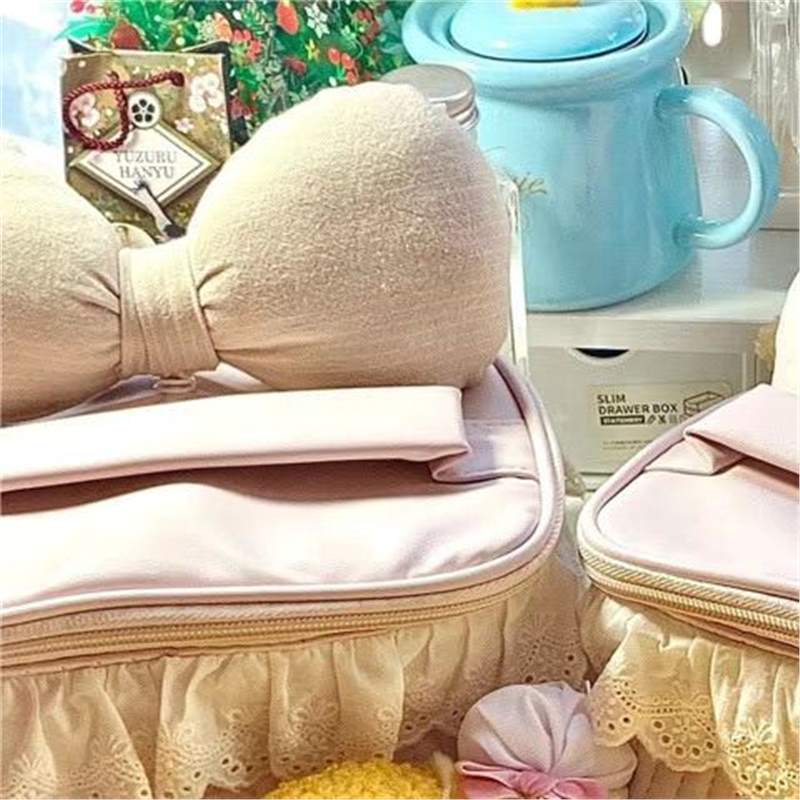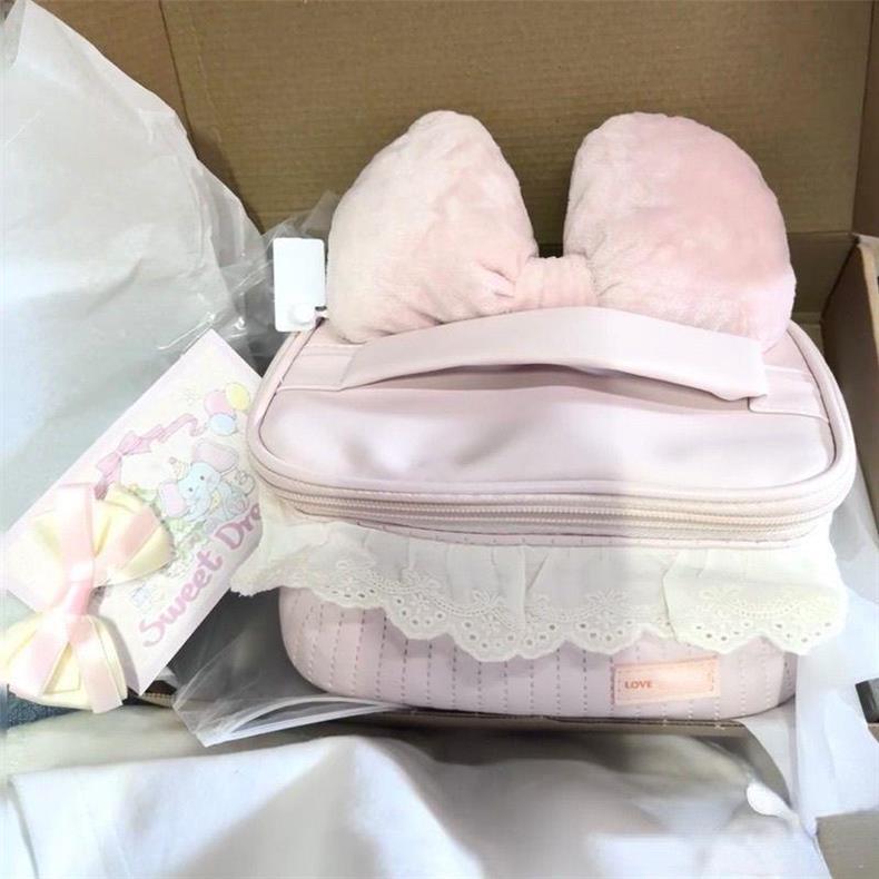 새로운 레이스 리본 대용량 가죽 부드럽고 고급스럽고 실용적인 소녀의 단색 화장품 가방스토어 가기