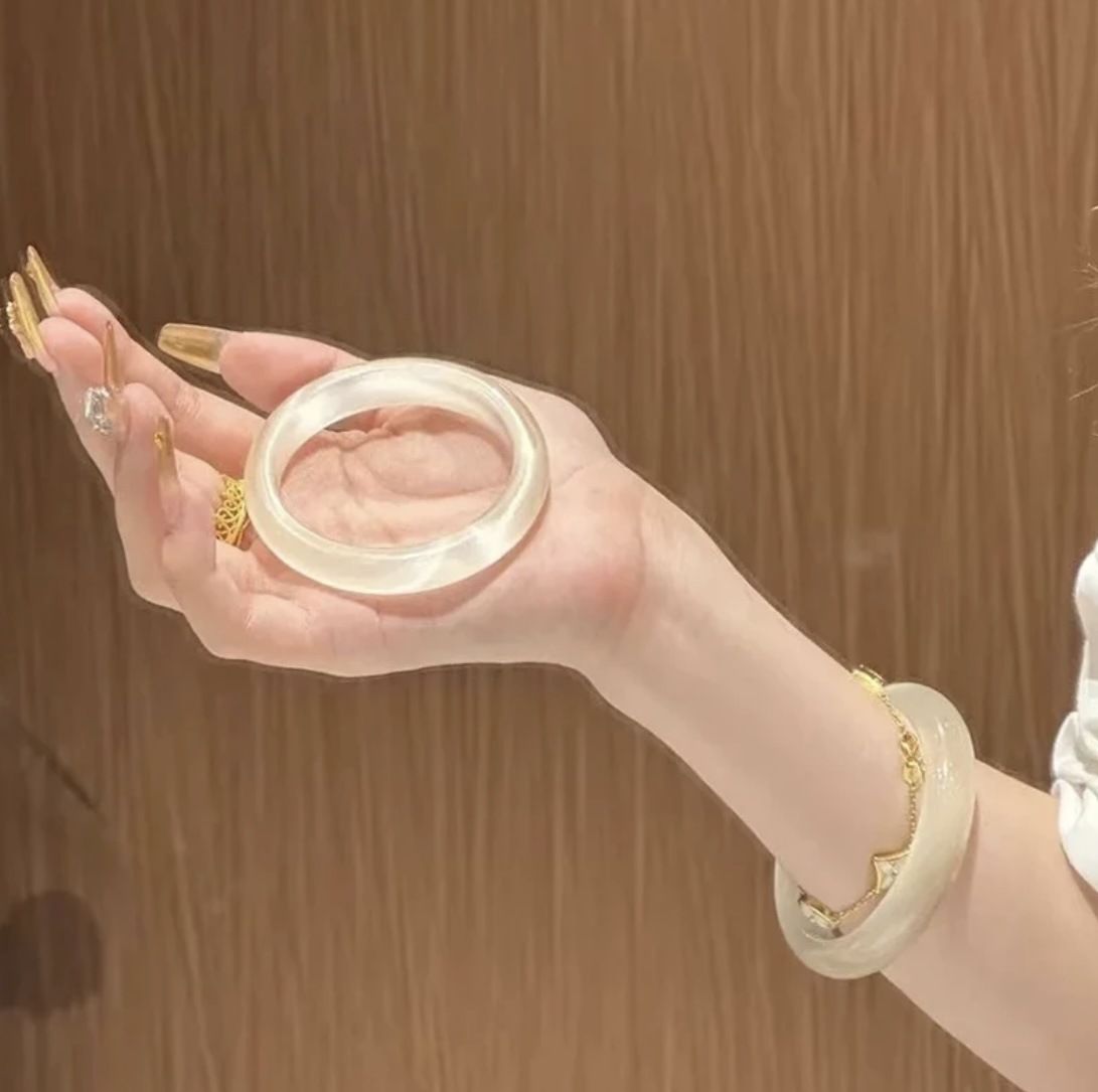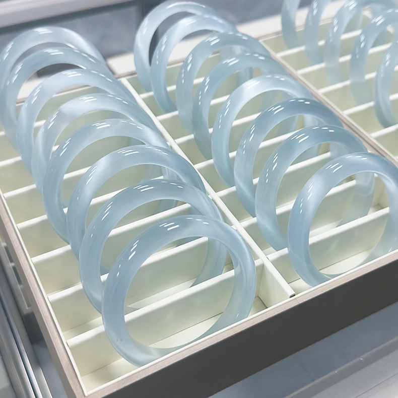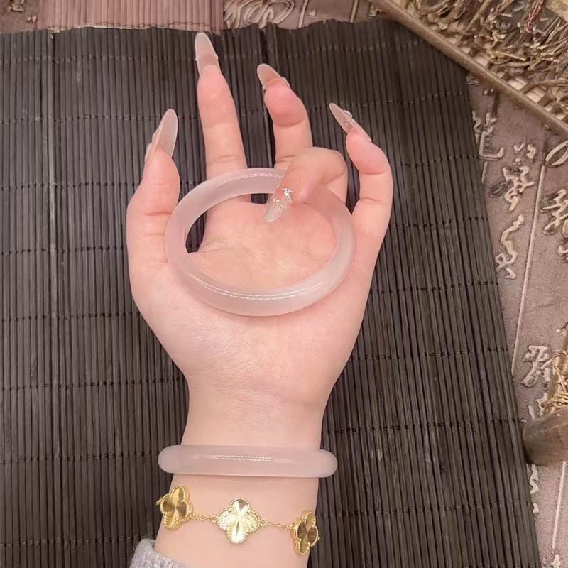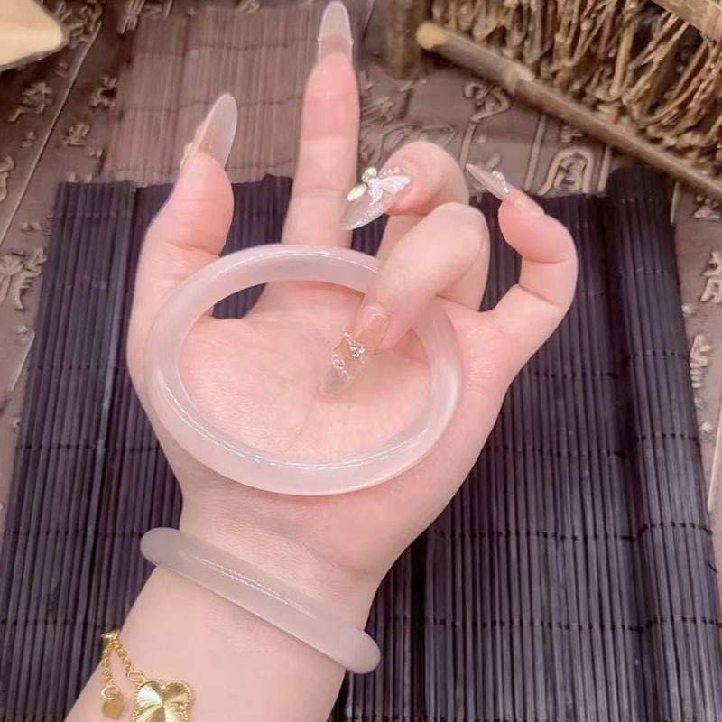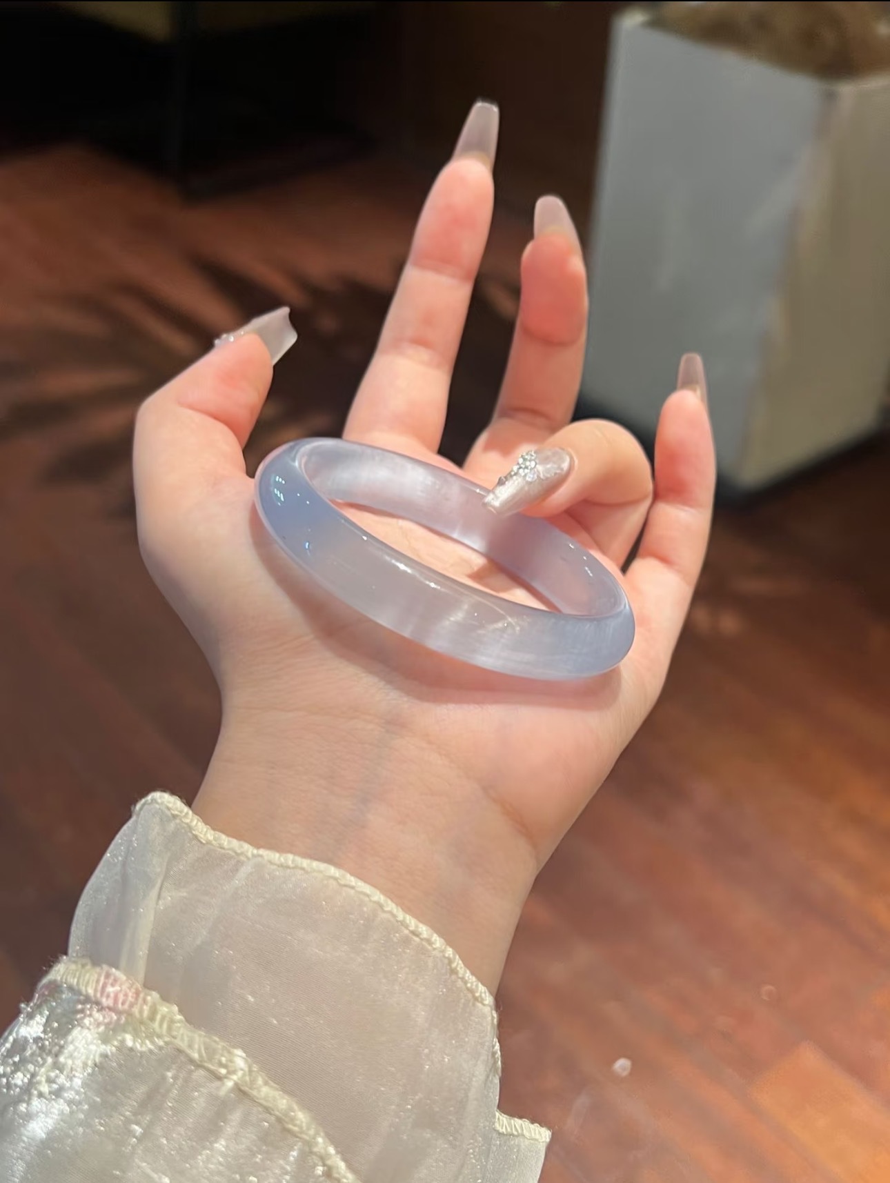 고품질 아이스 블루 고양이 눈 돌 팔찌 화이트 달빛 마노 Hetian Pingti 여성용 단순 Douyin 전자 상거래 도매스토어 가기