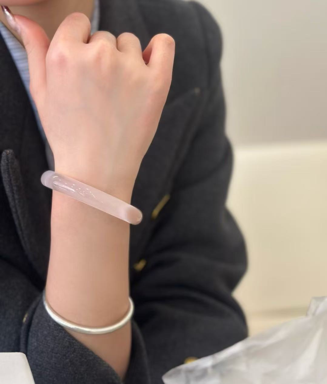 고품질 아이스 블루 고양이 눈 돌 팔찌 화이트 달빛 마노 Hetian Pingti 여성용 단순 Douyin 전자 상거래 도매