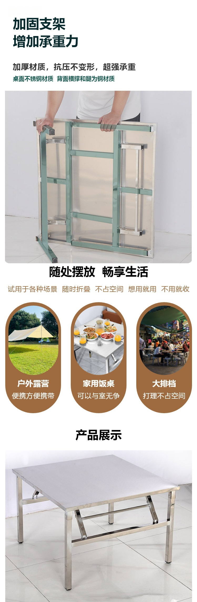 스테인레스 스틸 접이식 테이블 식탁 홈 바베큐 야외 테이블 먹는 야시장 스톨 휴대용 테이블 사각형 직사각형스토어 가기