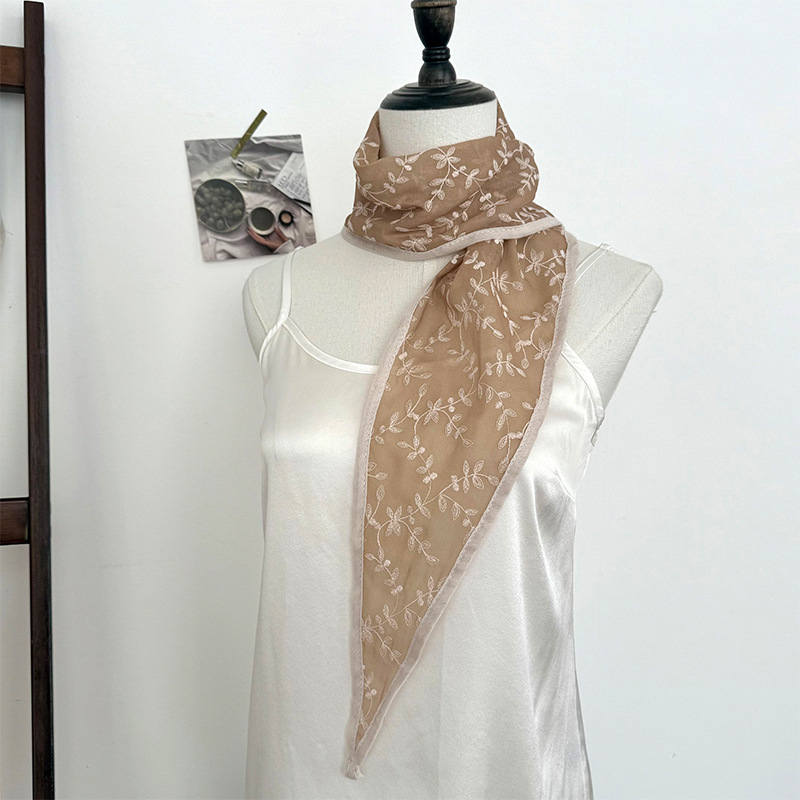 실크 스카프, 고급스러운 새로운 스타일, 꽃 자수 장식, 마름모꼴 작은 스카프, 리본, 터번, 머리띠, 헤어 액세서리